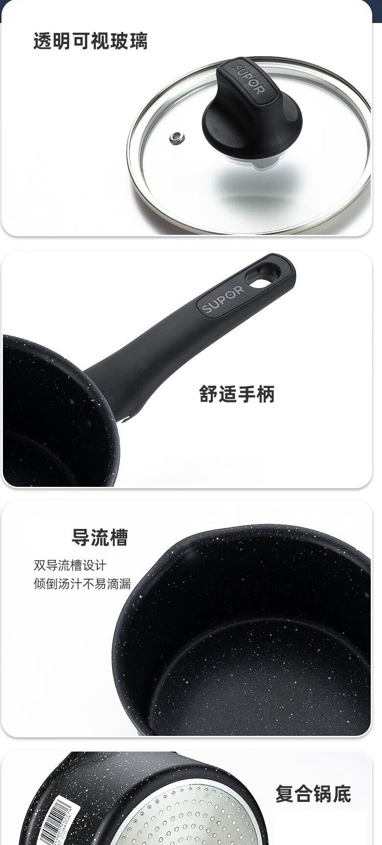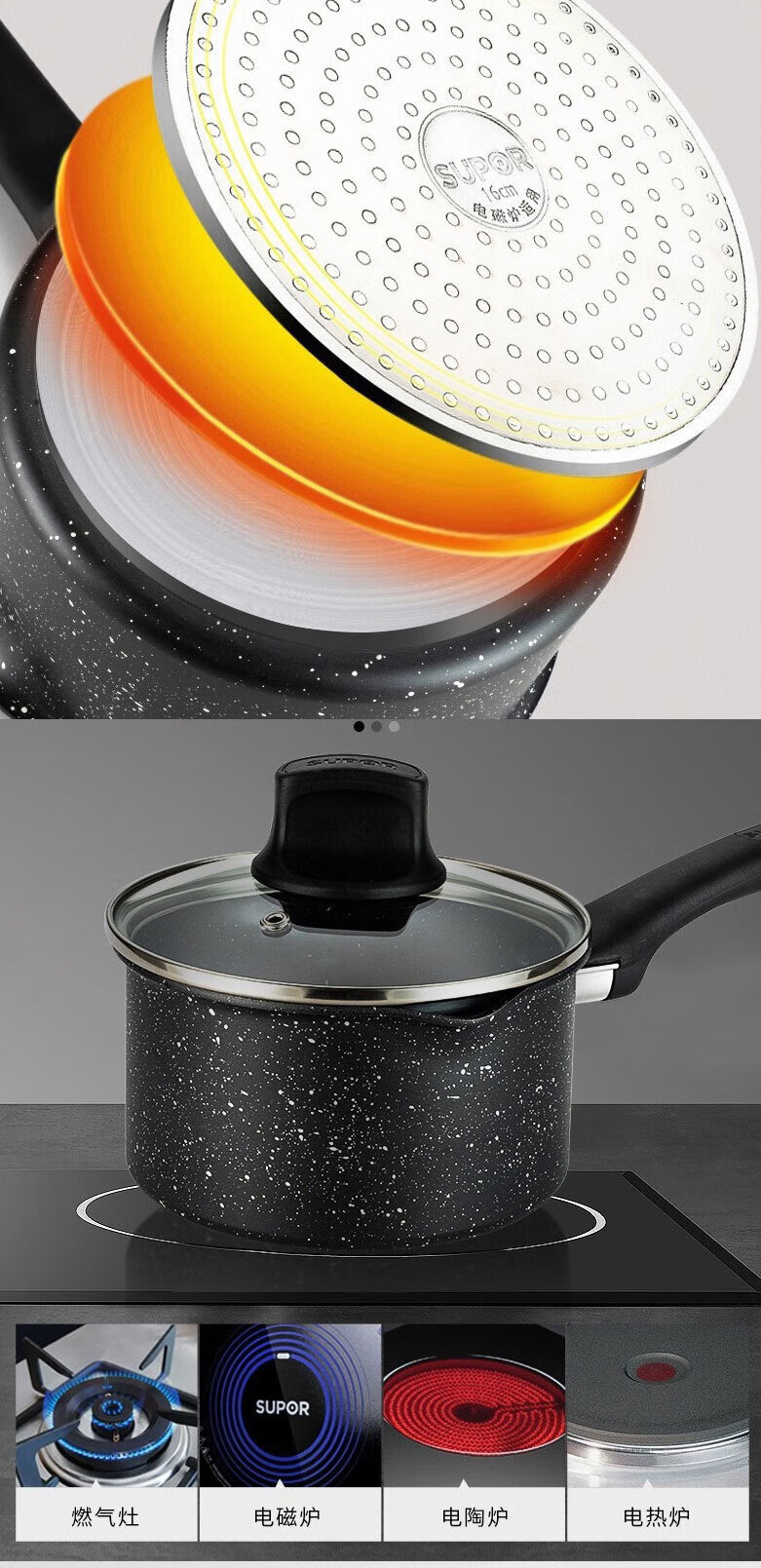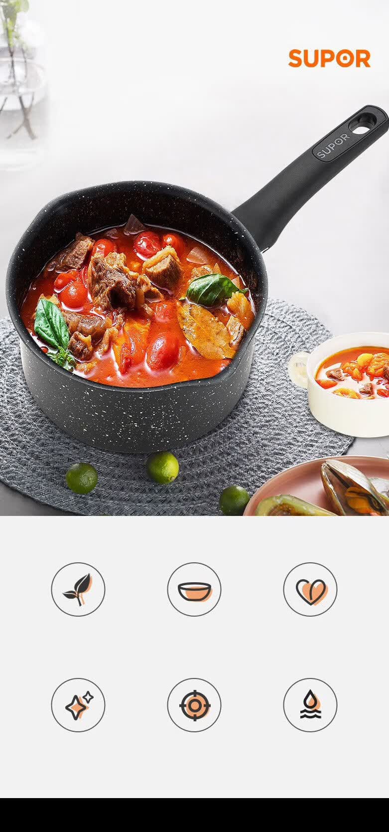 苏泊尔(SUPOR)星星石健康不粘奶锅﹒石铸系列 NT16NA1 16cm
