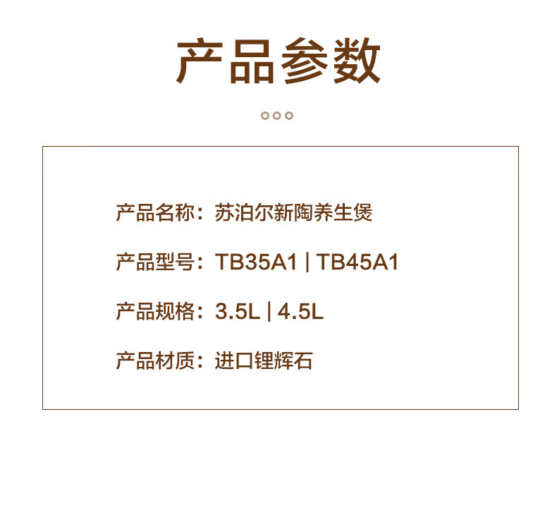 商品名称:苏泊尔supor 新陶养生煲·乐享系列·深汤煲 TB35A1 3.5L