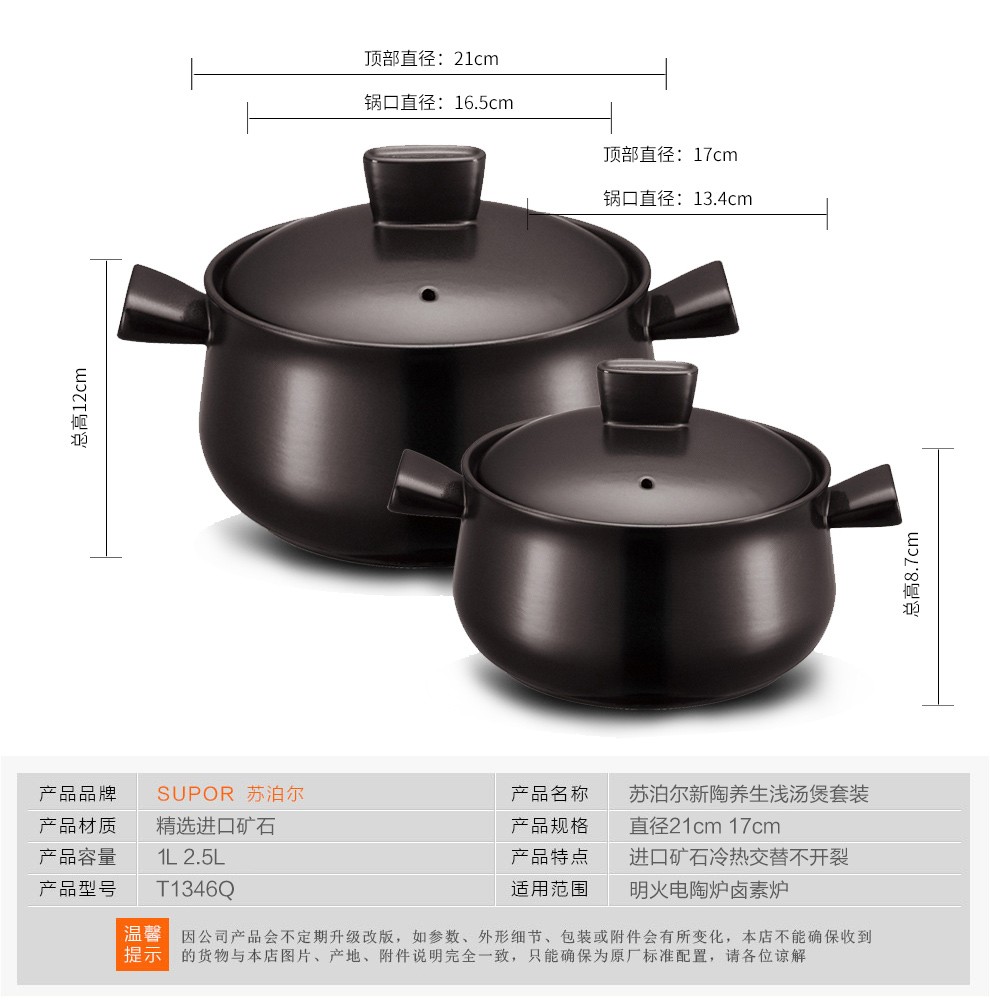 商品名称:苏泊尔(SUPOR)新陶养生煲.乐享系列.套装煲 T1346Q 1L+2.5L