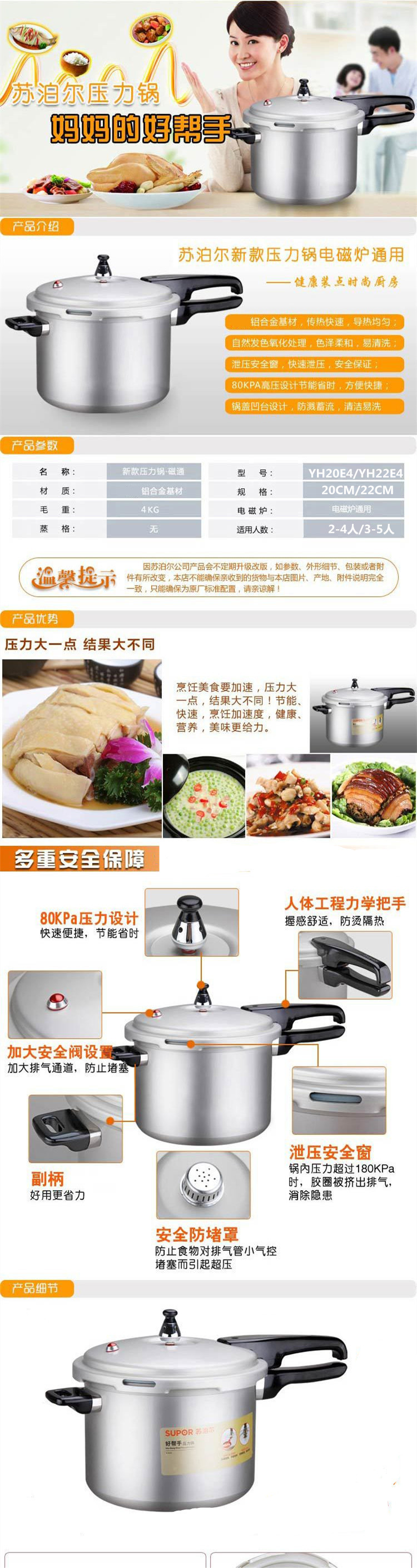 商品名称:苏泊尔 新款压力锅.磁通 YH22E4 22cm