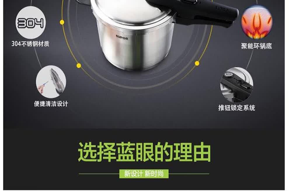 商品名称:苏泊尔 蓝眼不锈钢压力锅 YW22L1 22cm