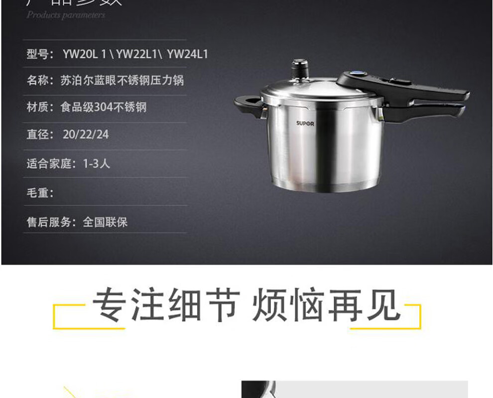 商品名称:苏泊尔 蓝眼不锈钢压力锅 YW24L1 24cm