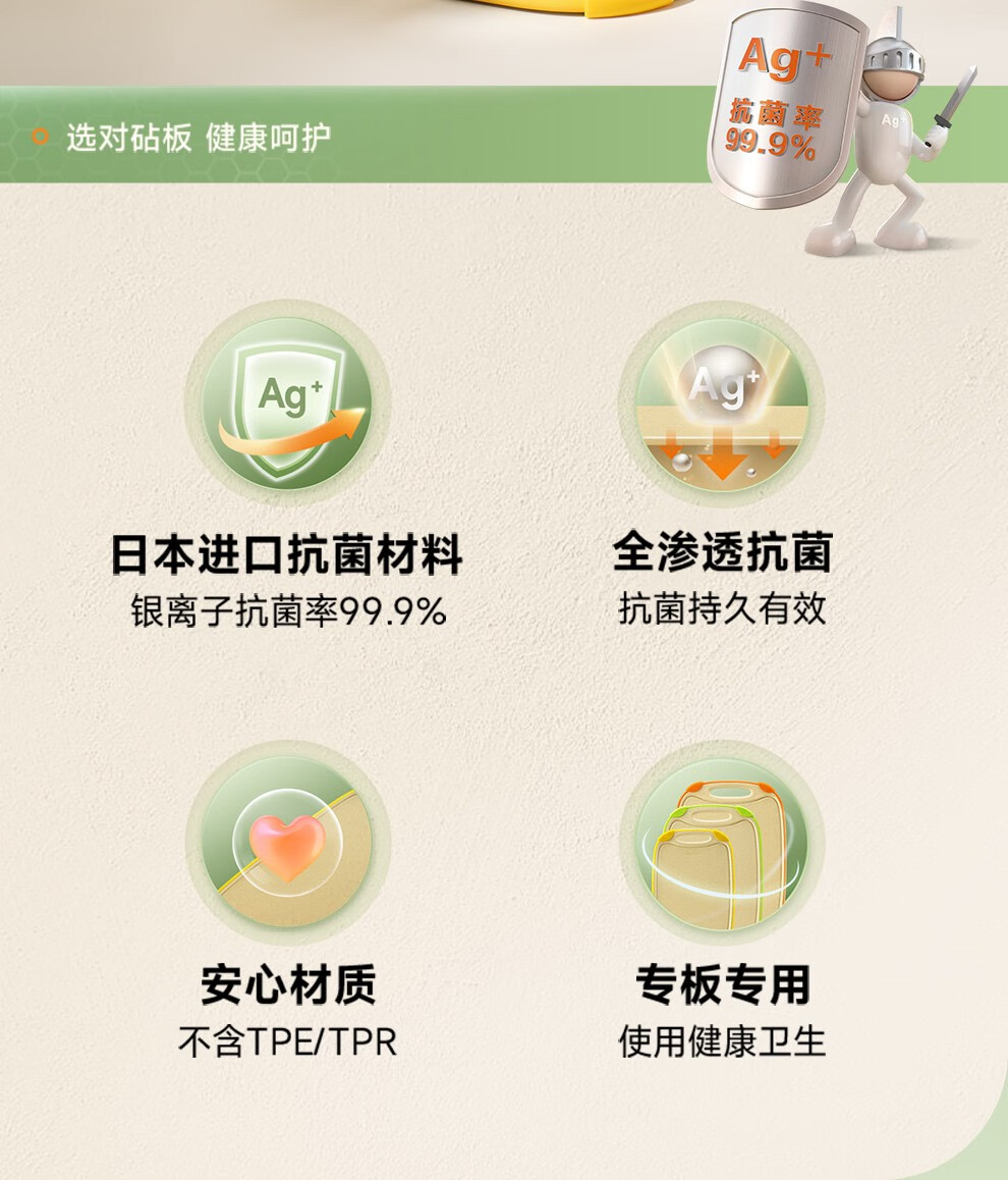 商品名称:苏泊尔(SUPOR) 银护盾抗菌砧板.复合麦纤维 P302006AB1