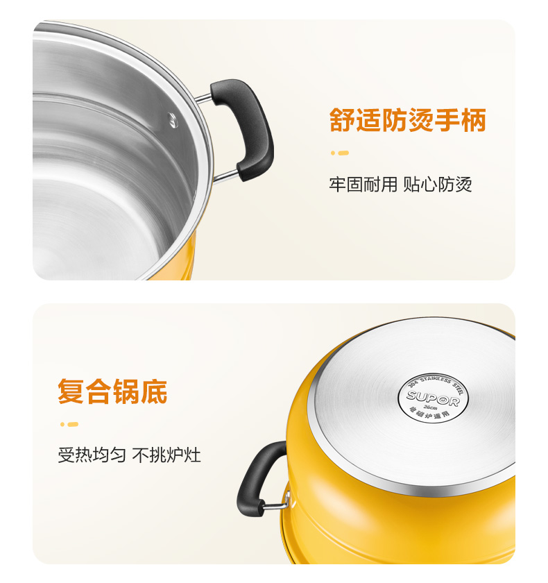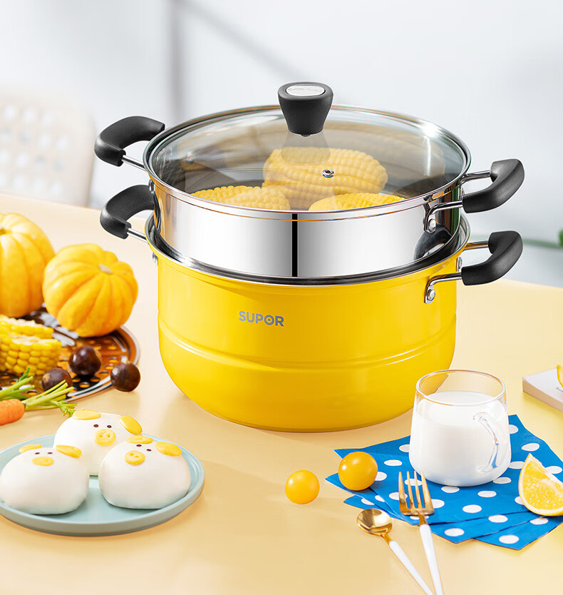苏泊尔SUPOR 真味鲜不锈钢双层复底蒸锅(活力黄)EZ28BS08