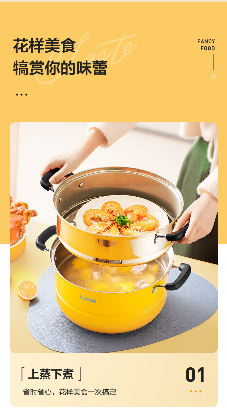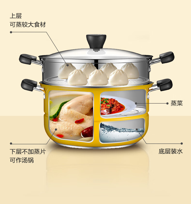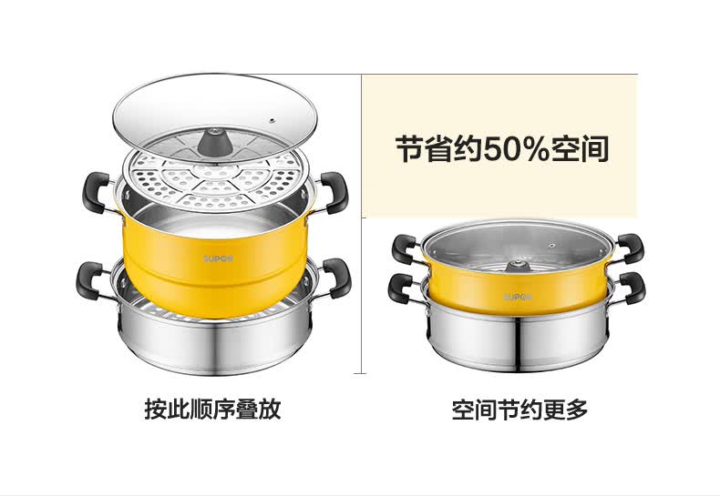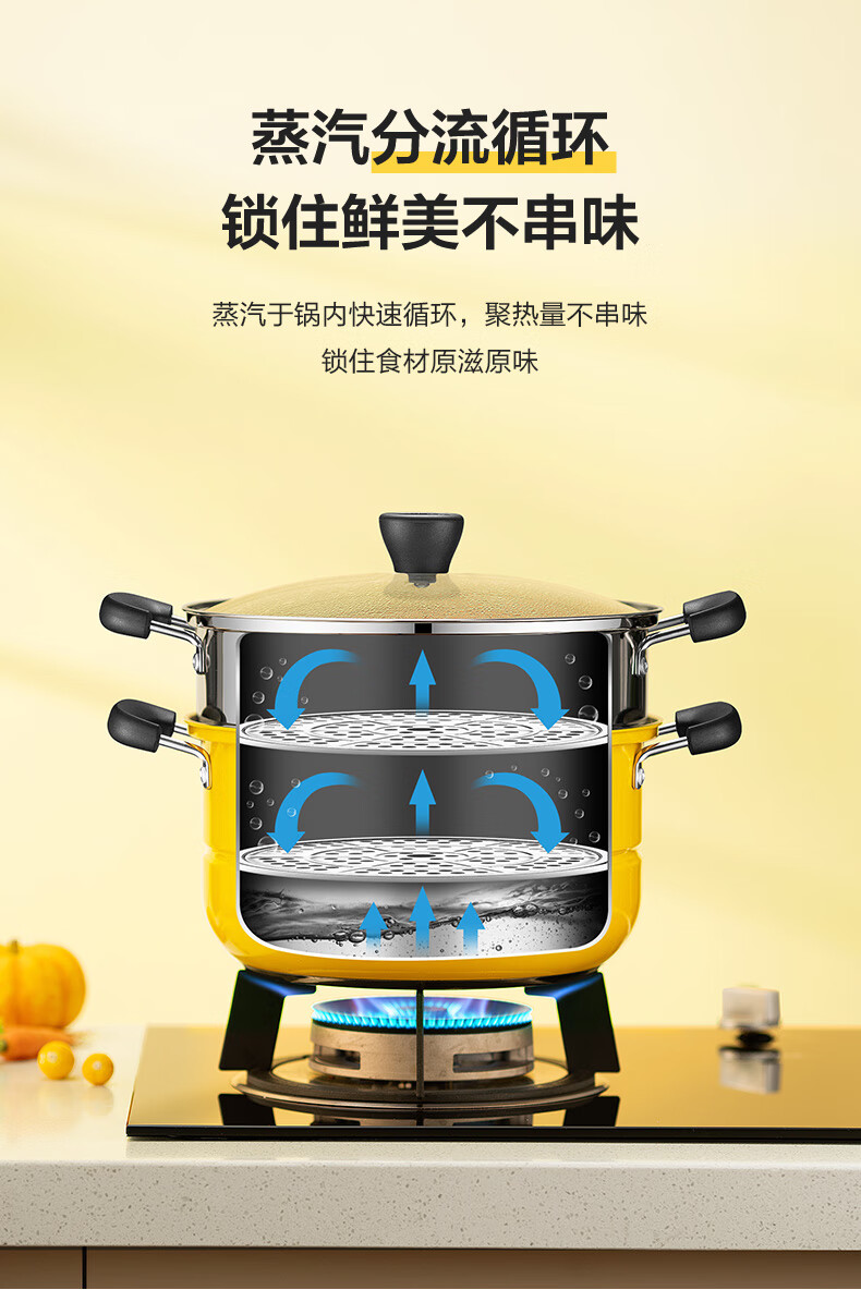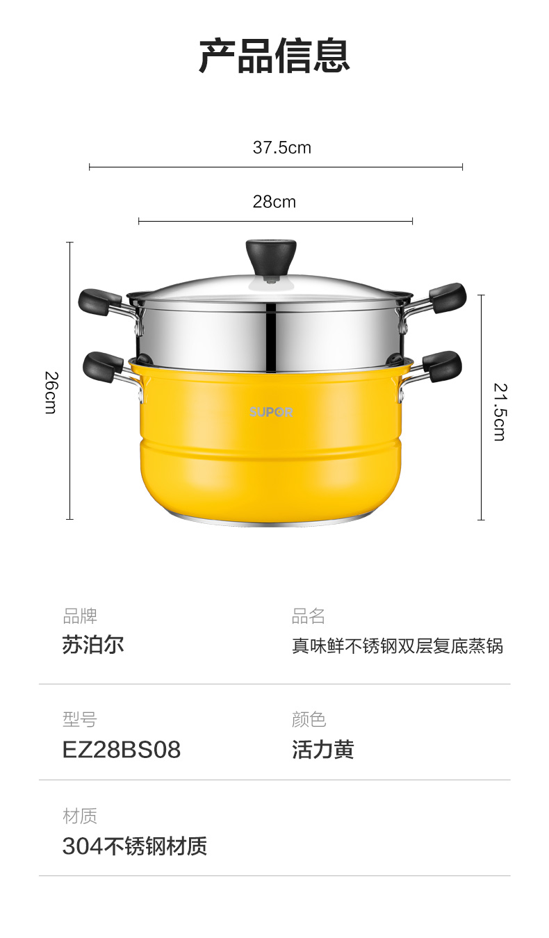 商品名称:苏泊尔SUPOR 真味鲜不锈钢双层复底蒸锅(活力黄)EZ28BS08
