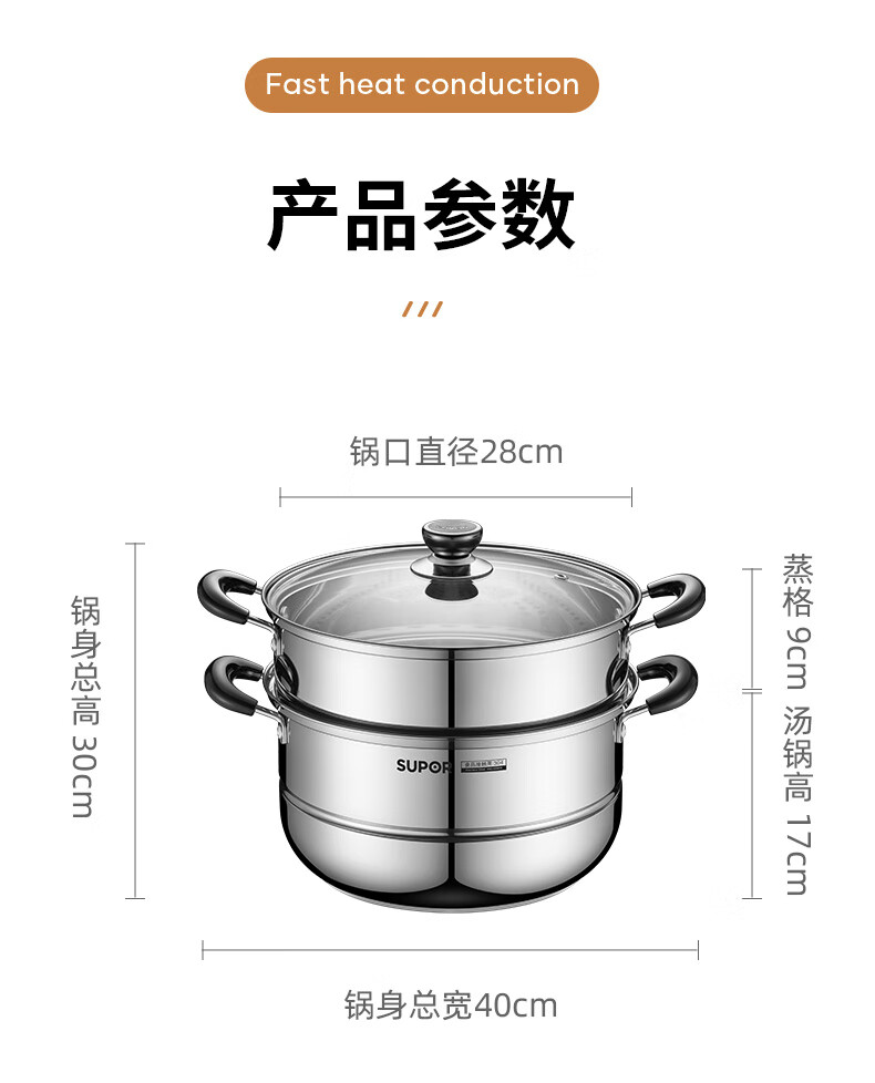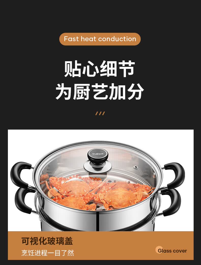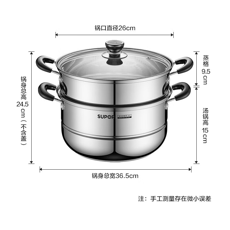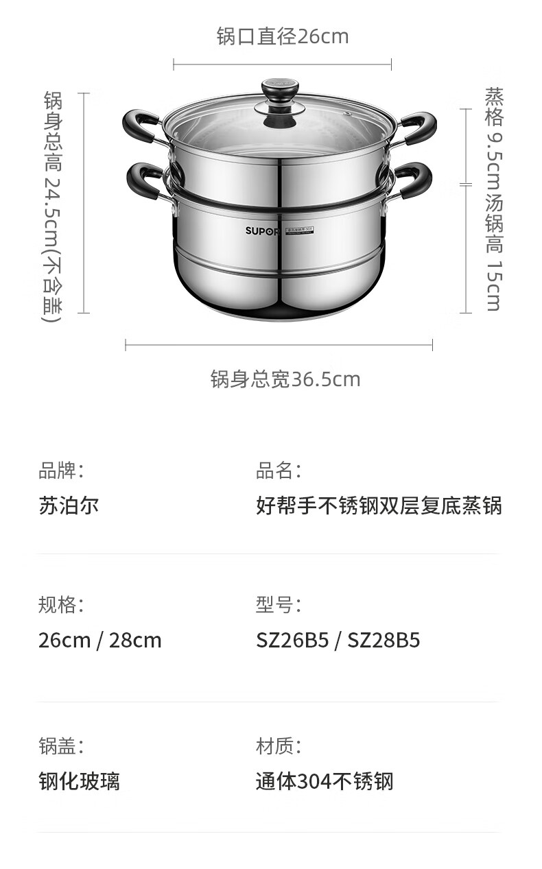 商品名称:苏泊尔SUPOR 好帮手不锈钢双层复底复底蒸锅 SZ26B5 26cm
