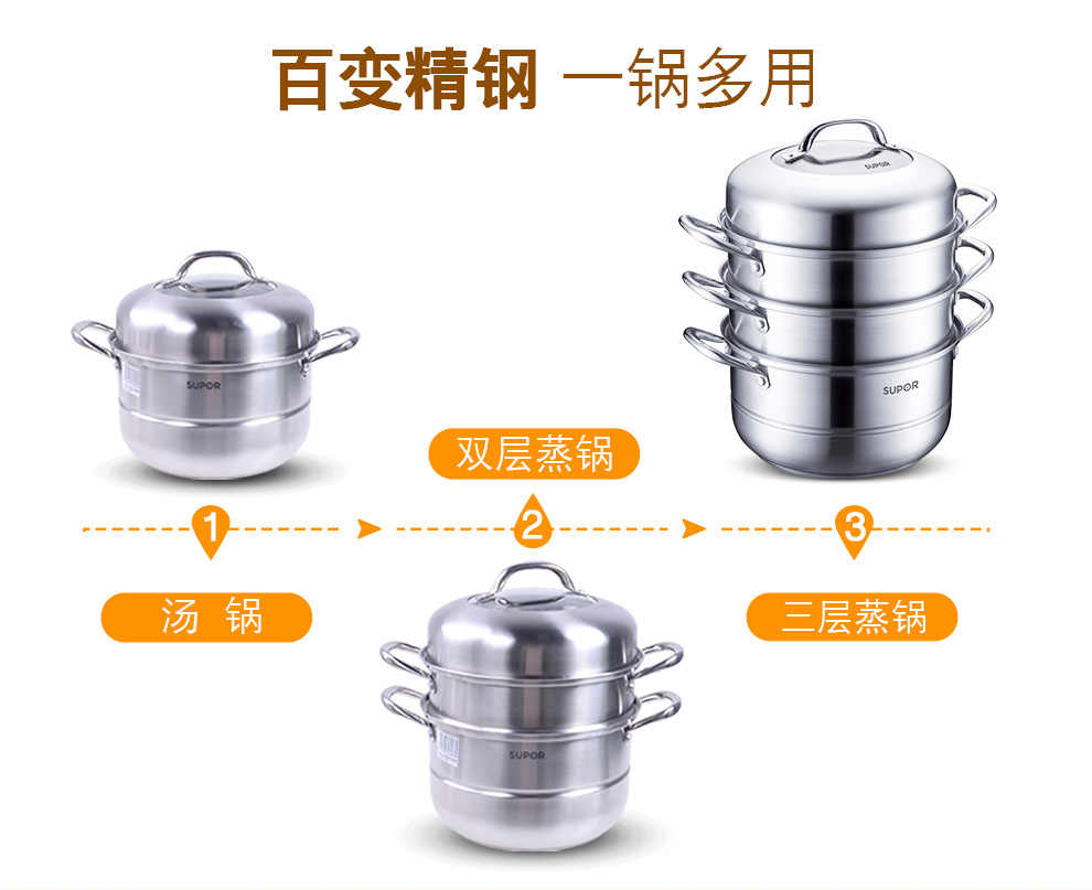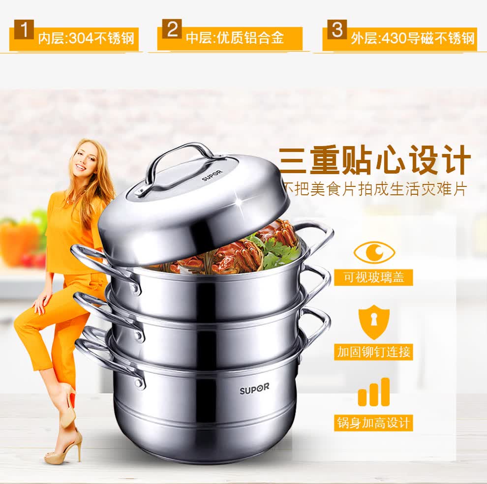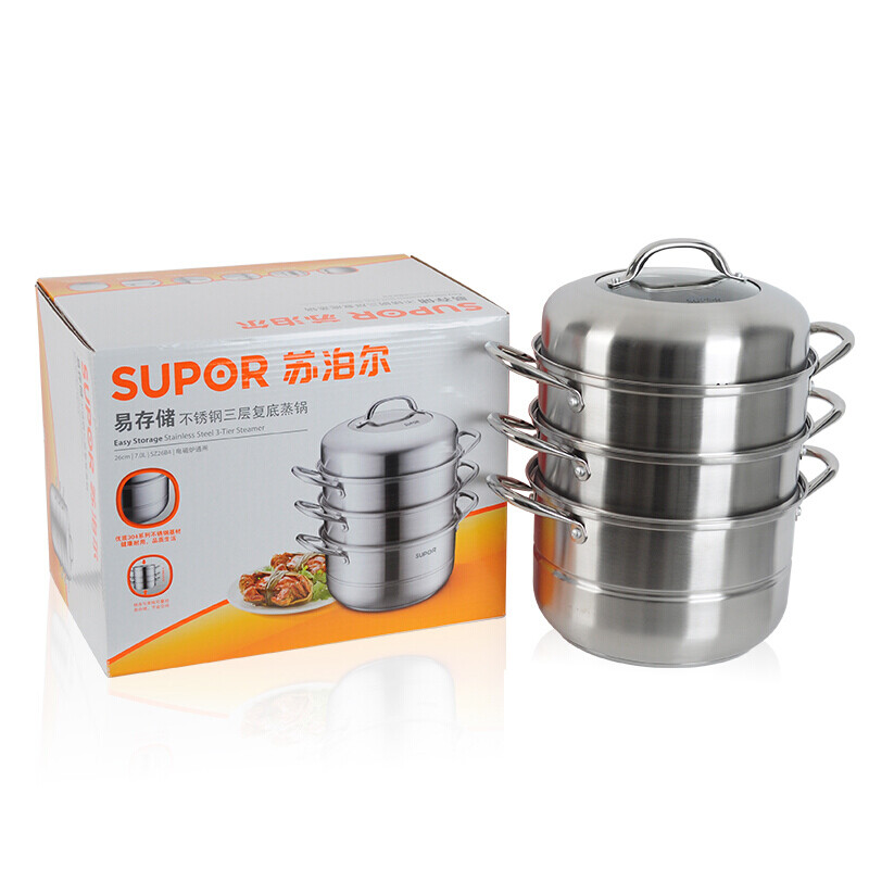 商品名称:苏泊尔 易存储不锈钢三层复底蒸锅(全钢系列)SZ26B4 26cm