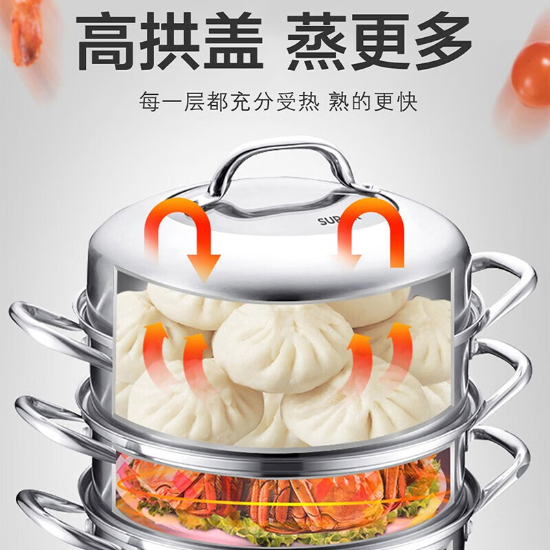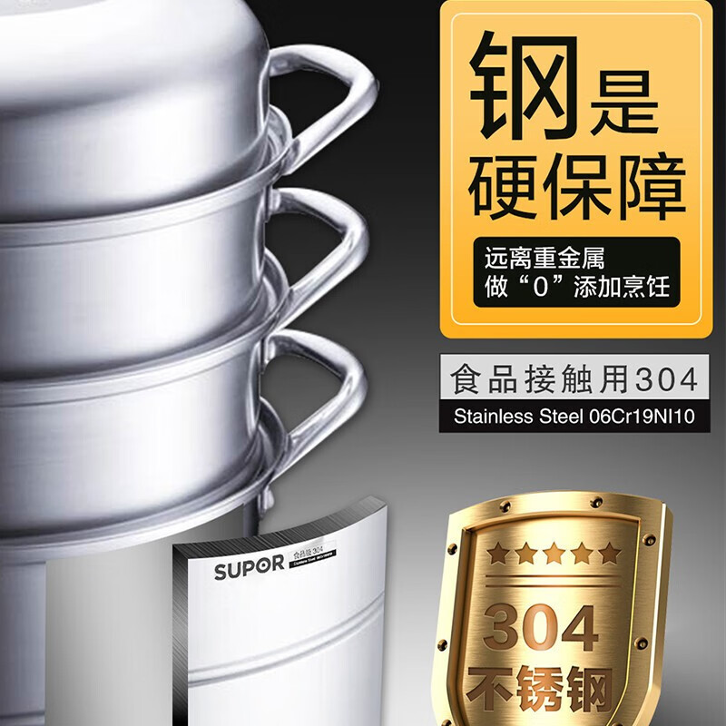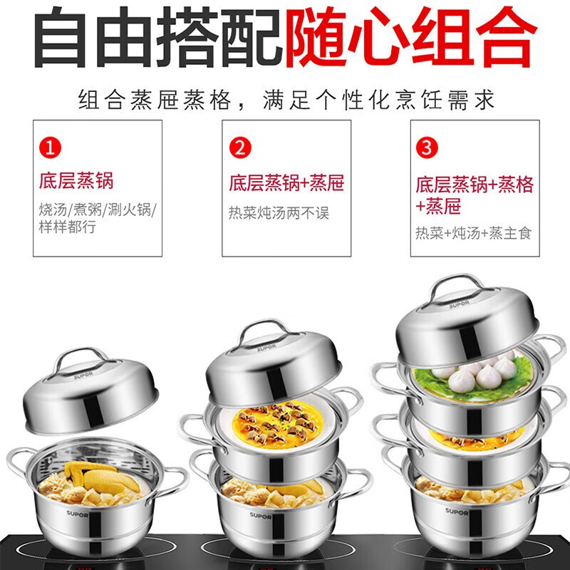 苏泊尔 易存储不锈钢三层复底蒸锅(全钢系列)SZ26B4 26cm