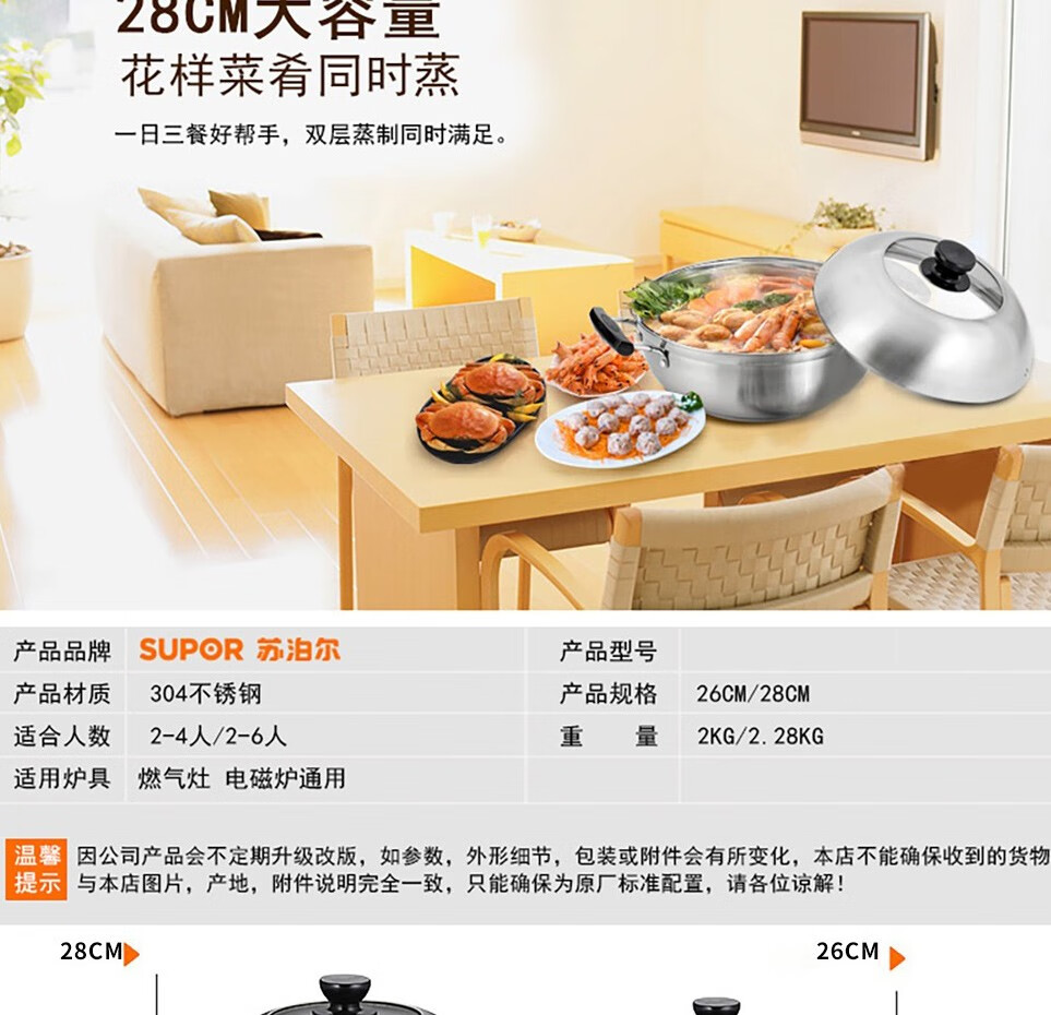 苏泊尔(SUPOR) 蒸滋味汤蒸多用锅 ST28Y1 28cm