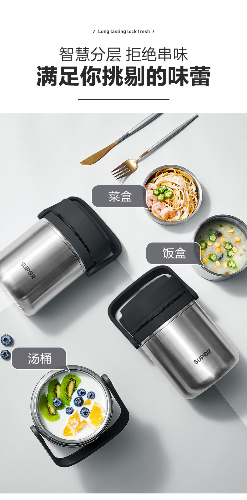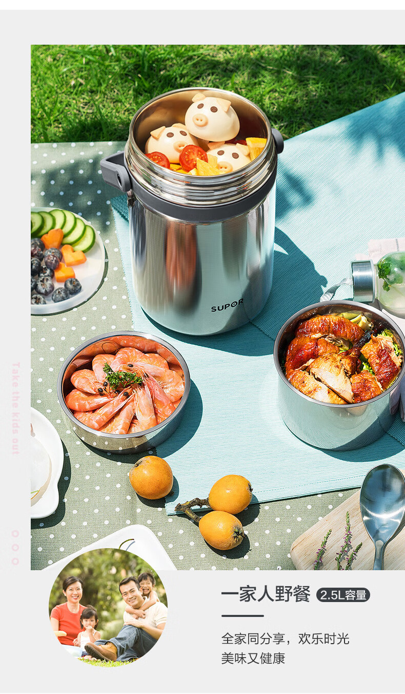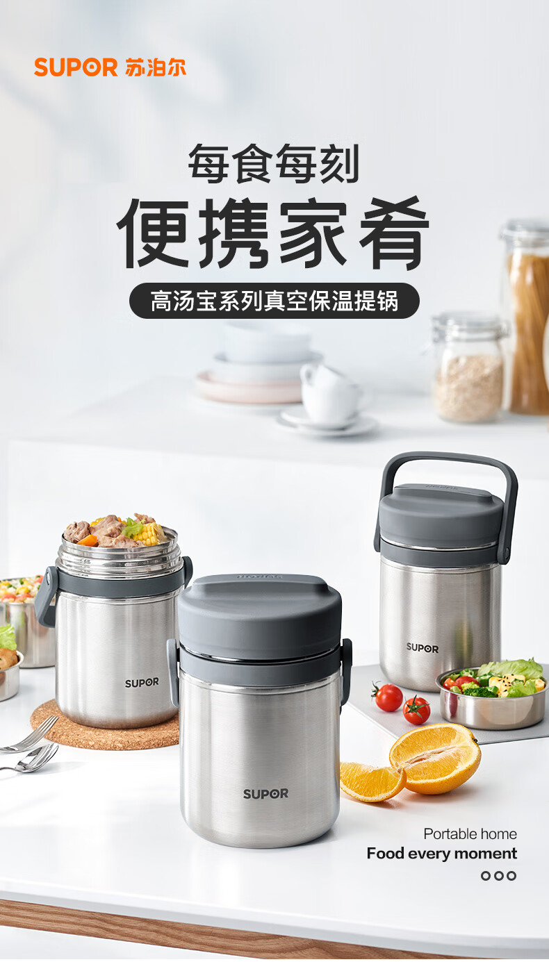 苏泊尔(SUPOR)高汤宝真空保温提锅.岩石黑/樱花粉 KF25AJ10 2.5L