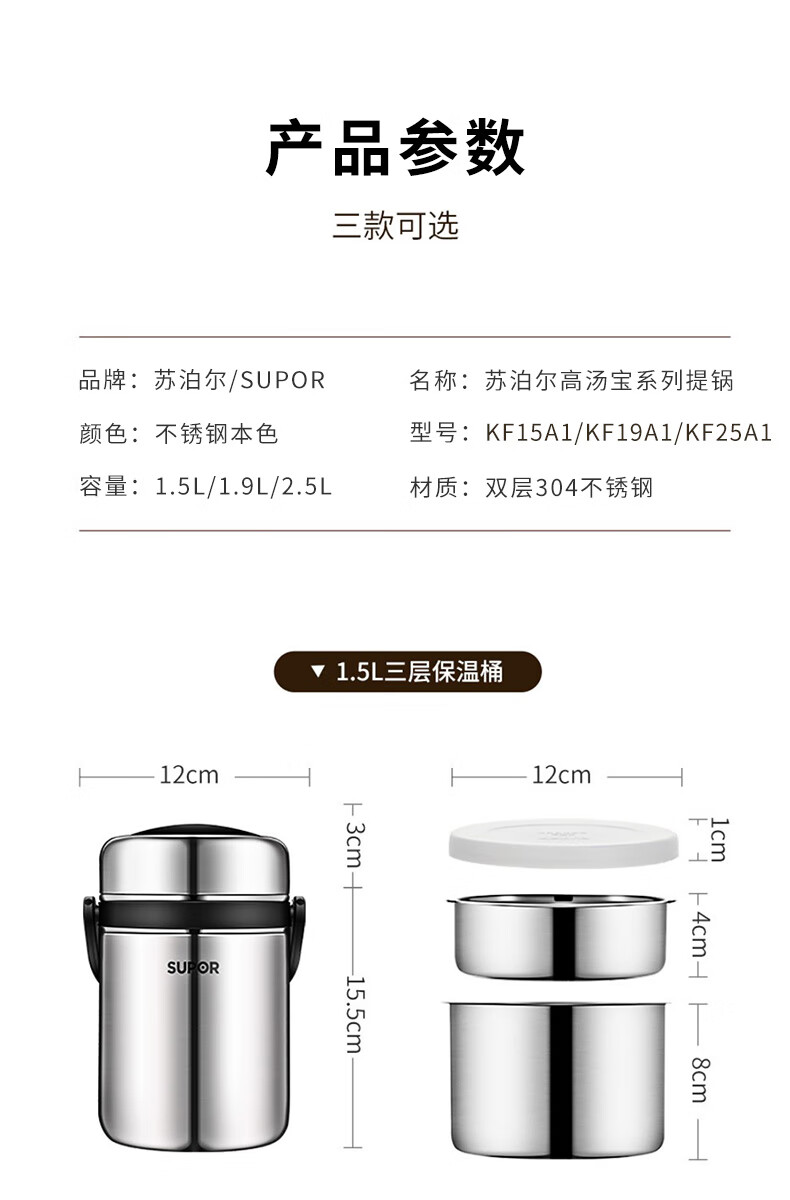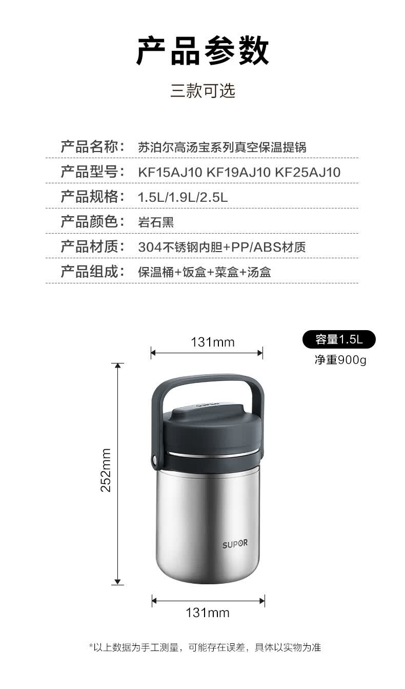 商品名称:苏泊尔(SUPOR)高汤宝真空保温提锅.岩石黑/樱花粉 KF19AJ10 1.9L