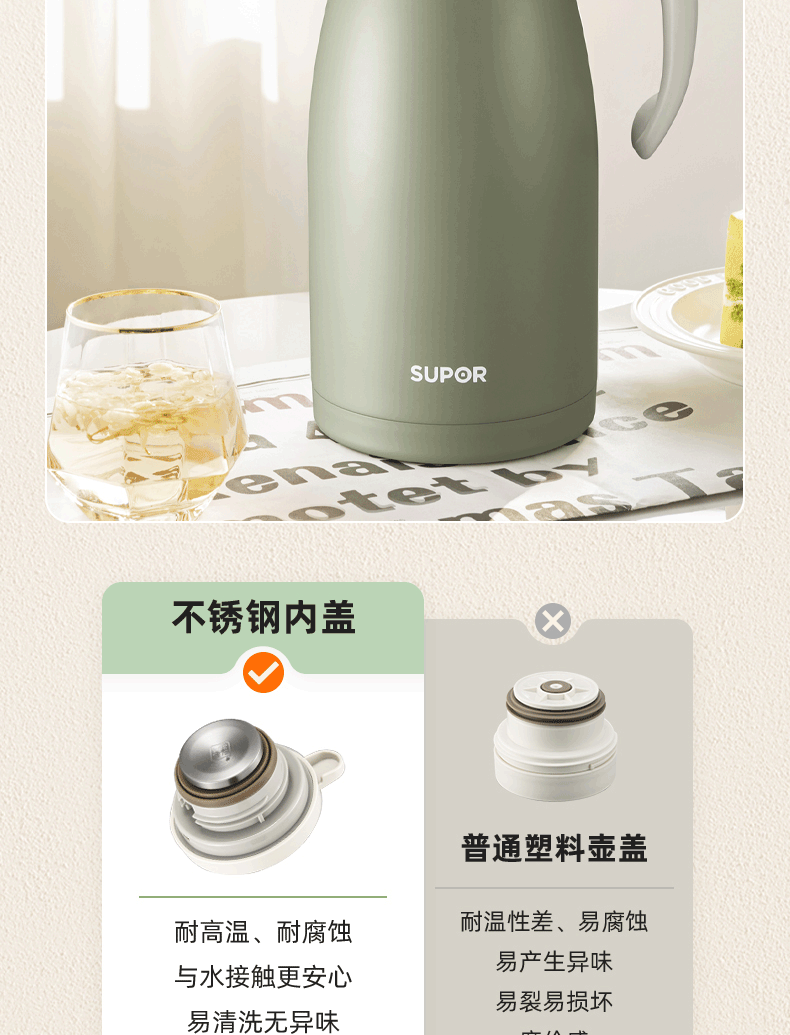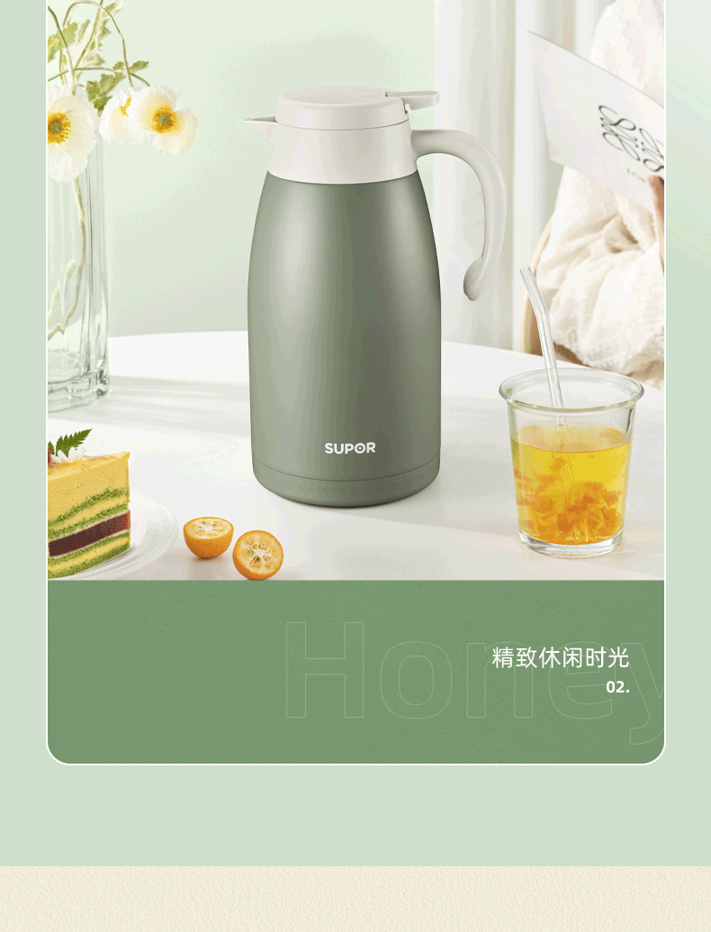 苏泊尔(SUPOR)真空保温壶2.0L.罗勒绿 KC20KH52