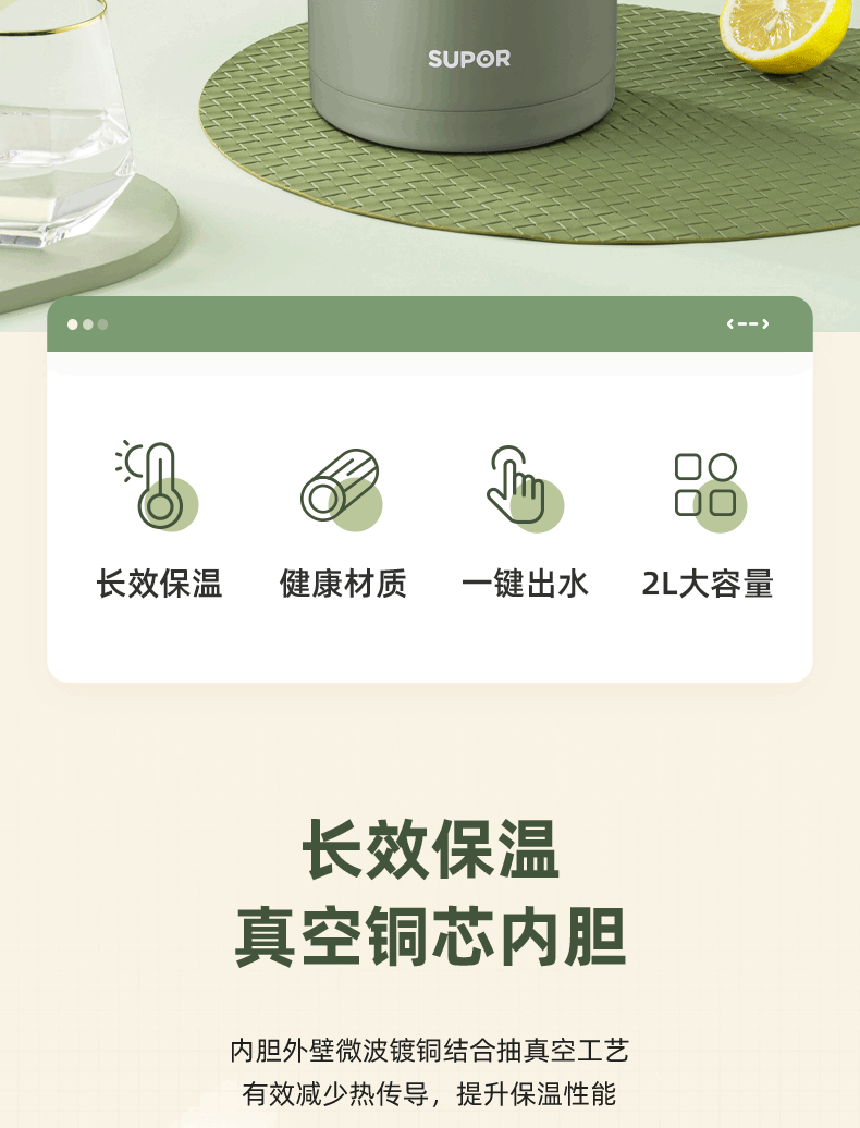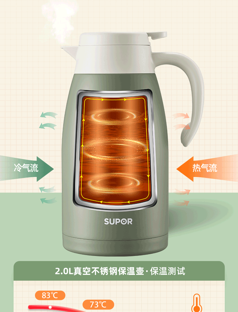 商品名称:苏泊尔(SUPOR)真空保温壶2.0L.罗勒绿 KC20KH52