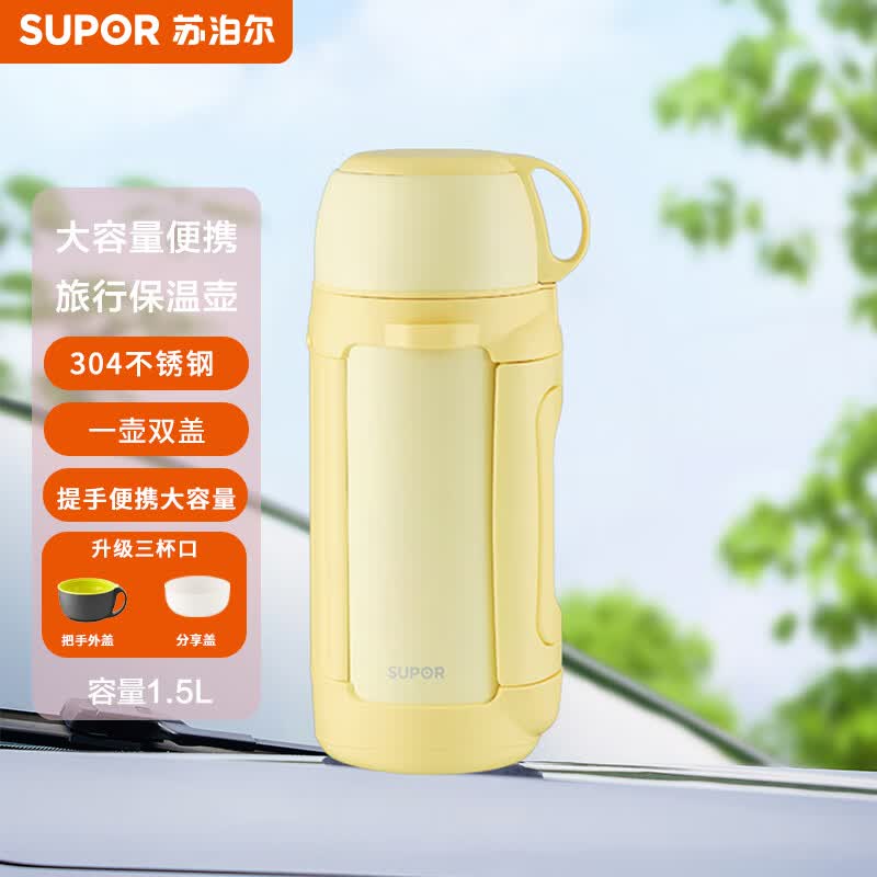 商品名称:苏泊尔 便携旅行保温壶 1.5L.奶油黄 KC15KY10