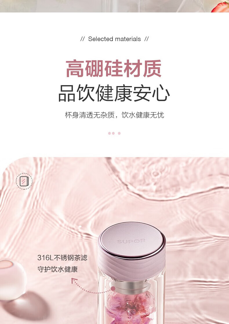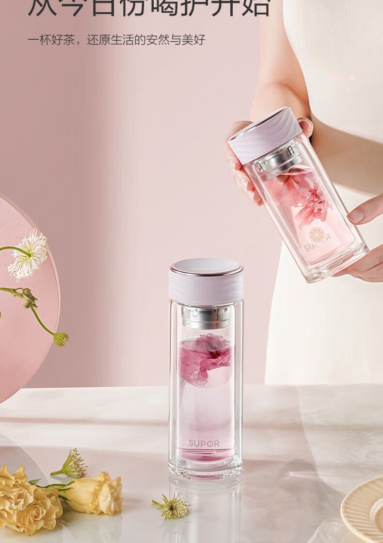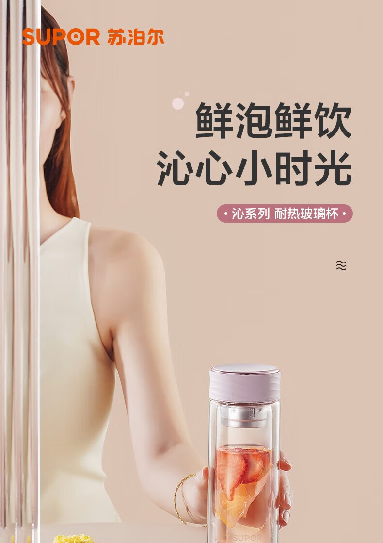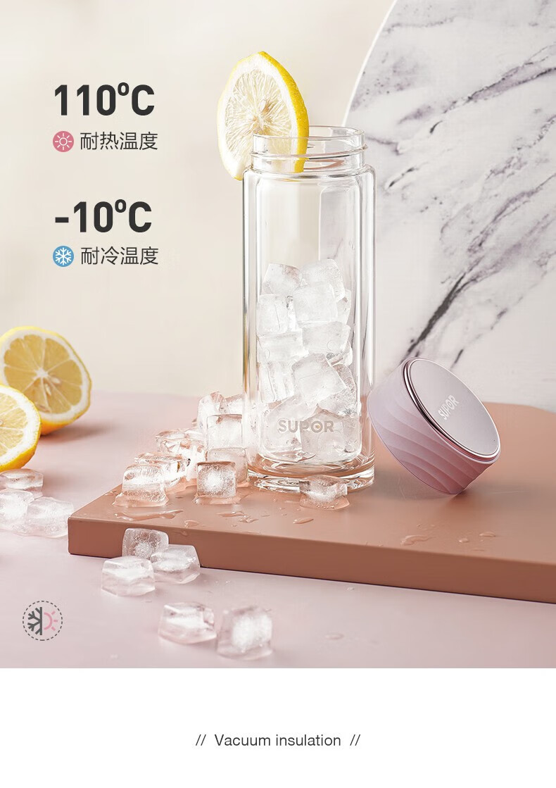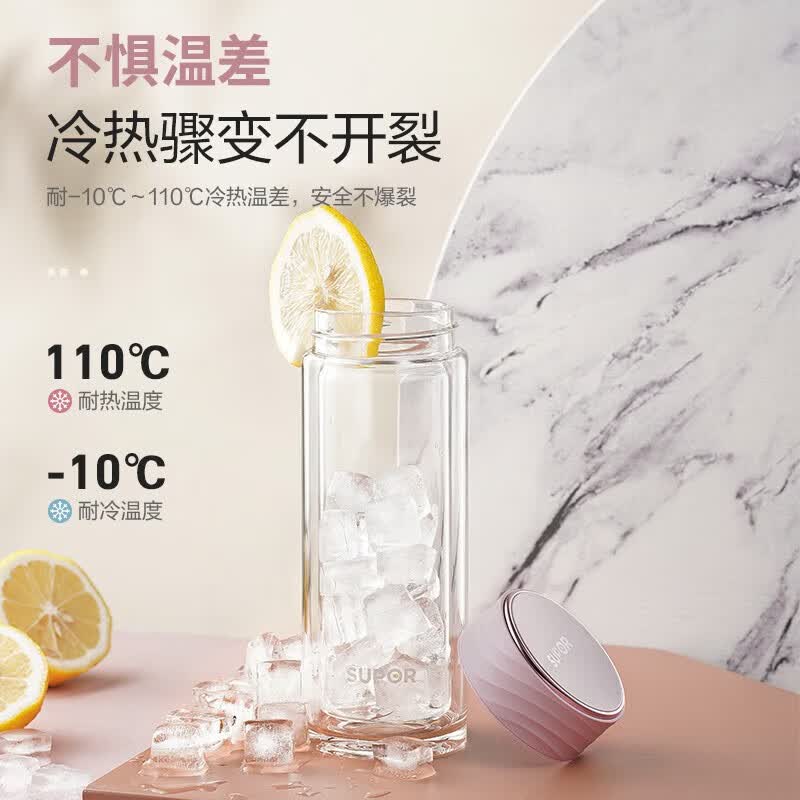 苏泊尔(SUPOR) 沁·耐热玻璃杯.灰黑色/粉紫色 KC34GR10 340ML