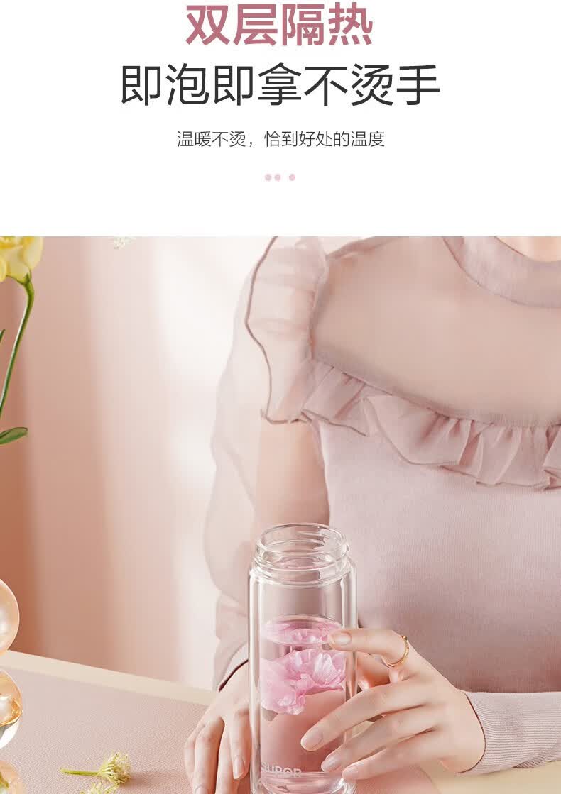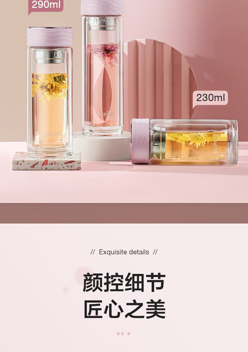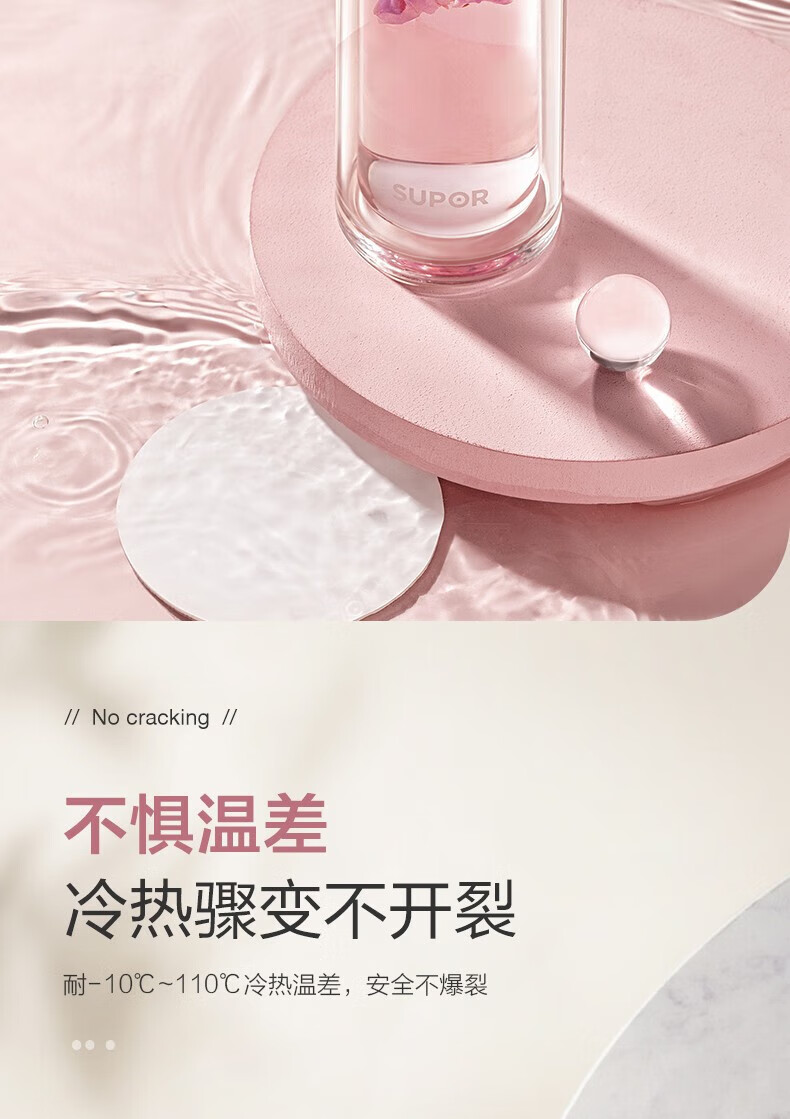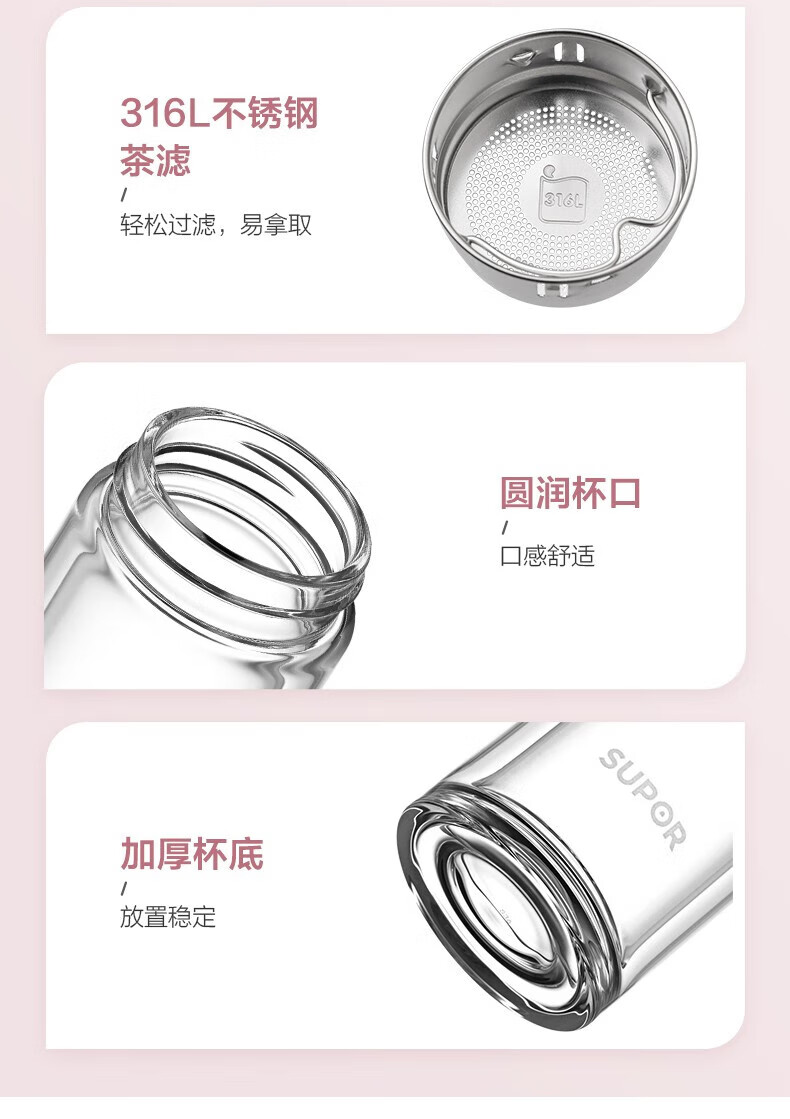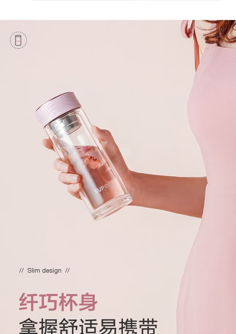 苏泊尔(SUPOR) 沁·耐热玻璃杯.灰黑色/粉紫色 KC34GR10 340ML