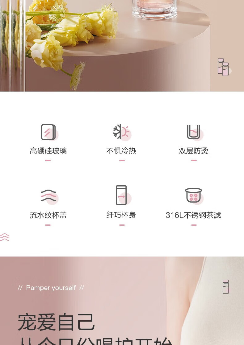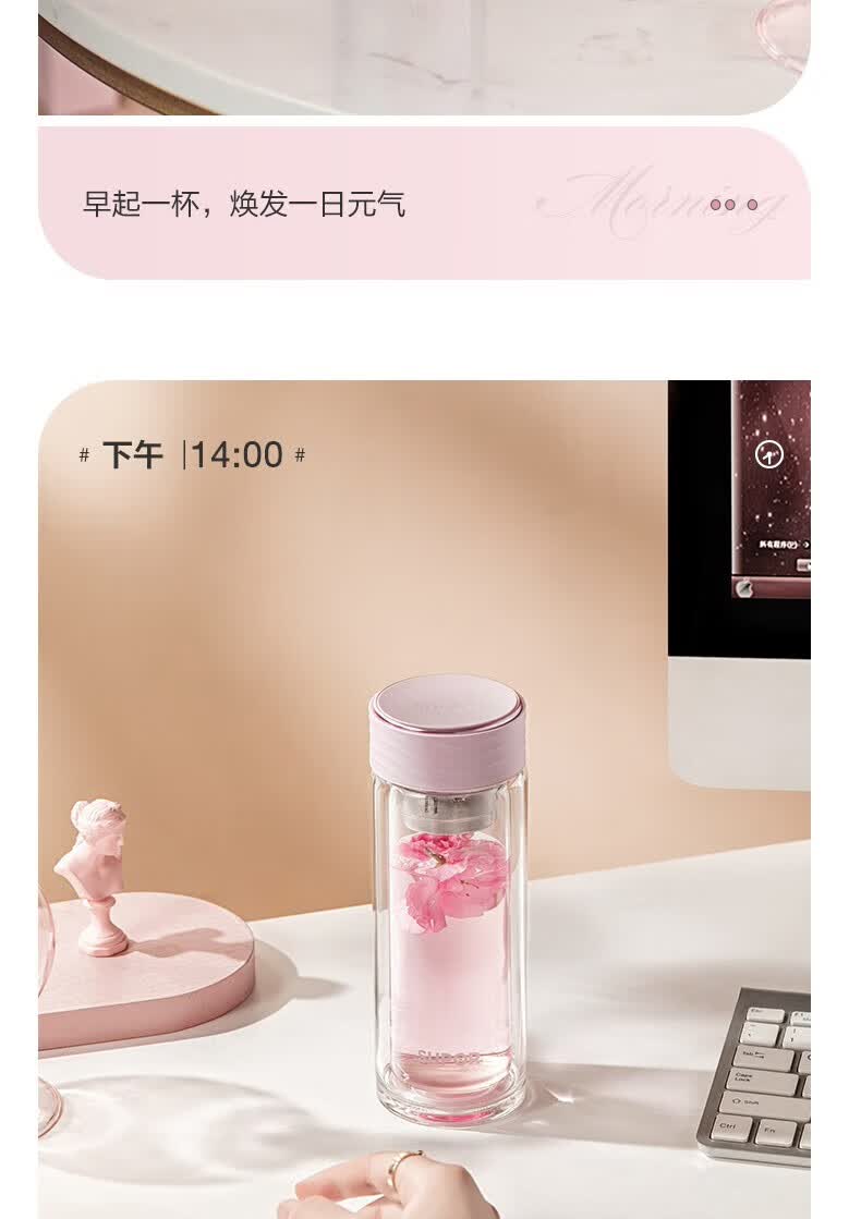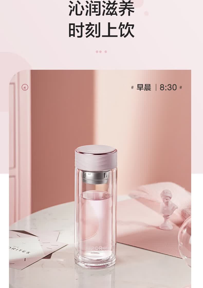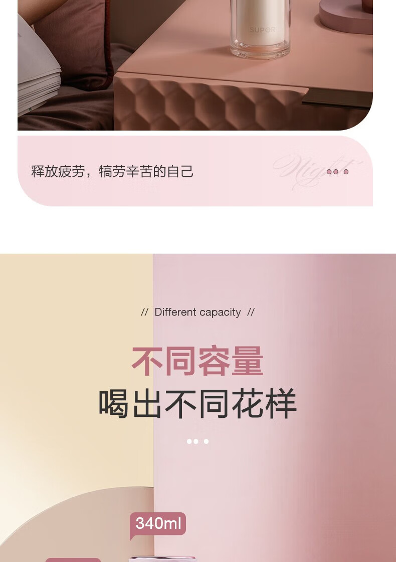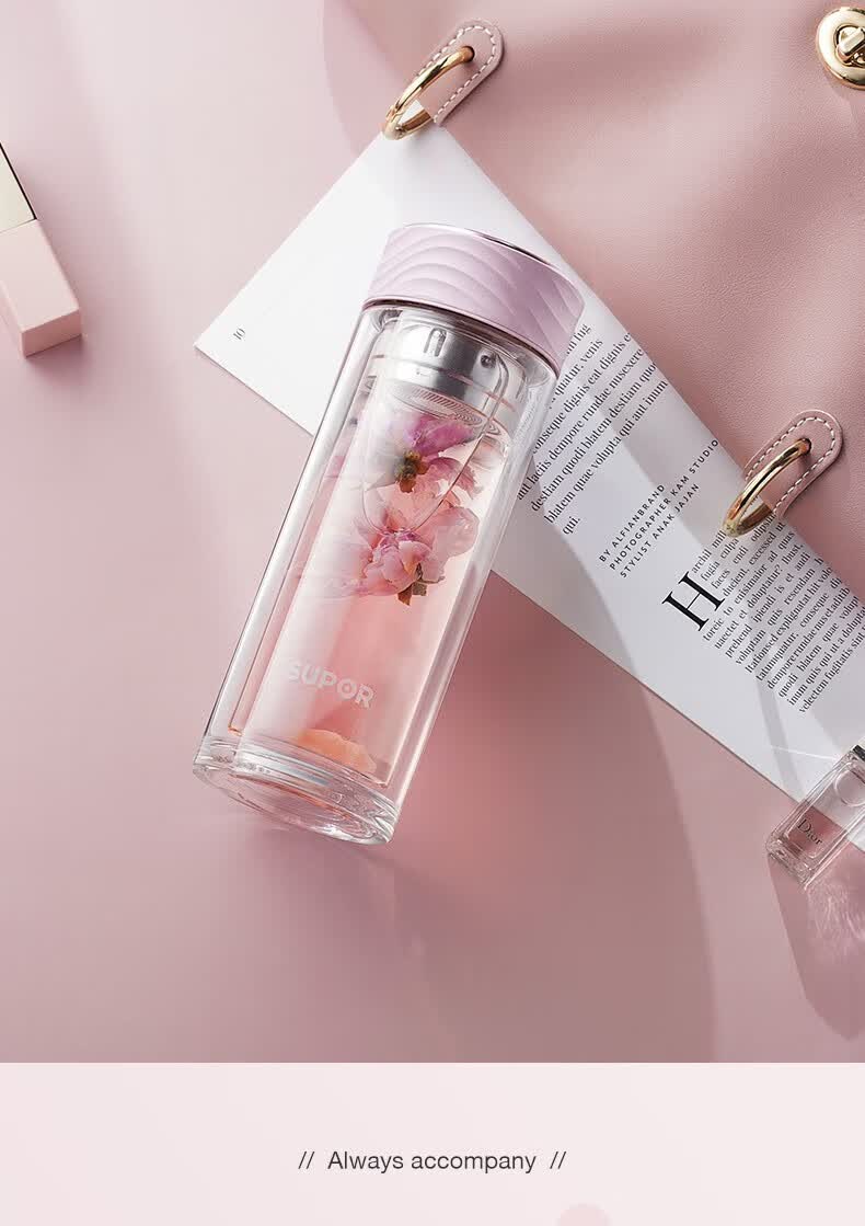 苏泊尔(SUPOR) 沁·耐热玻璃杯.灰黑色/粉紫色 KC34GR10 340ML