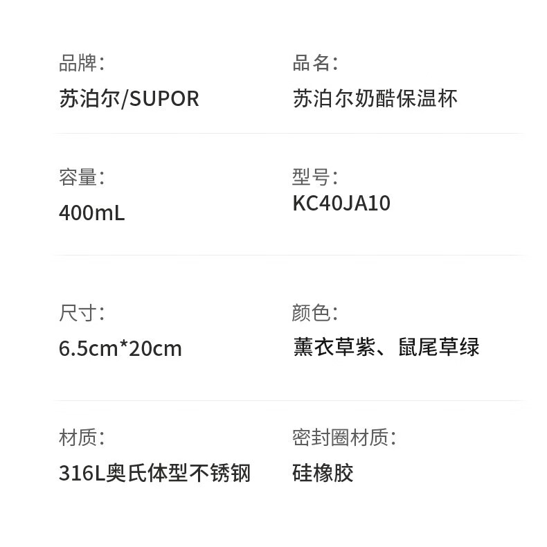 商品名称:苏泊尔(SUPOR) 奶酷保温杯400ML KC40JA10