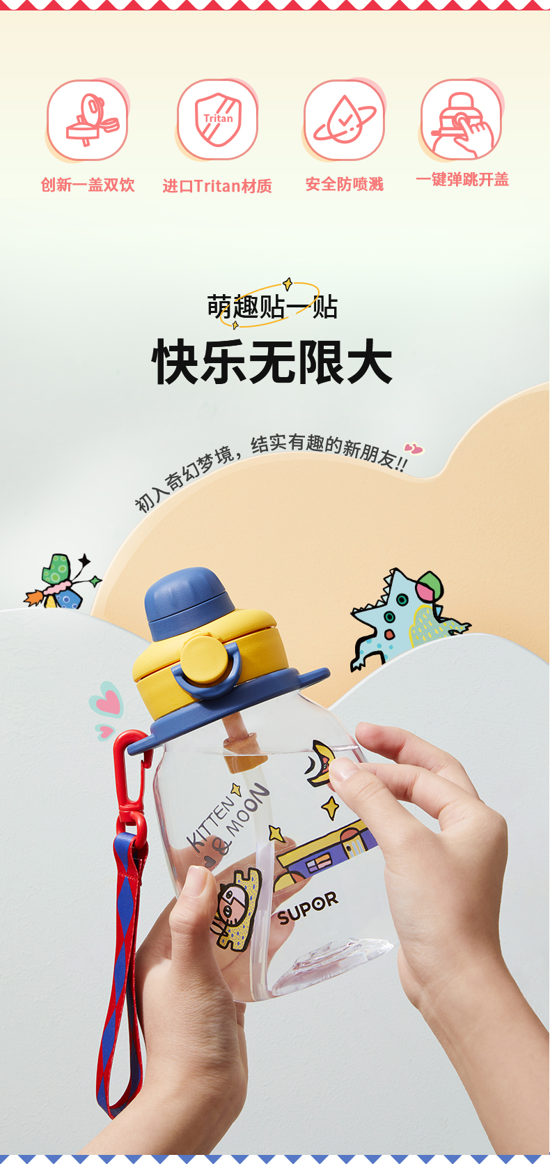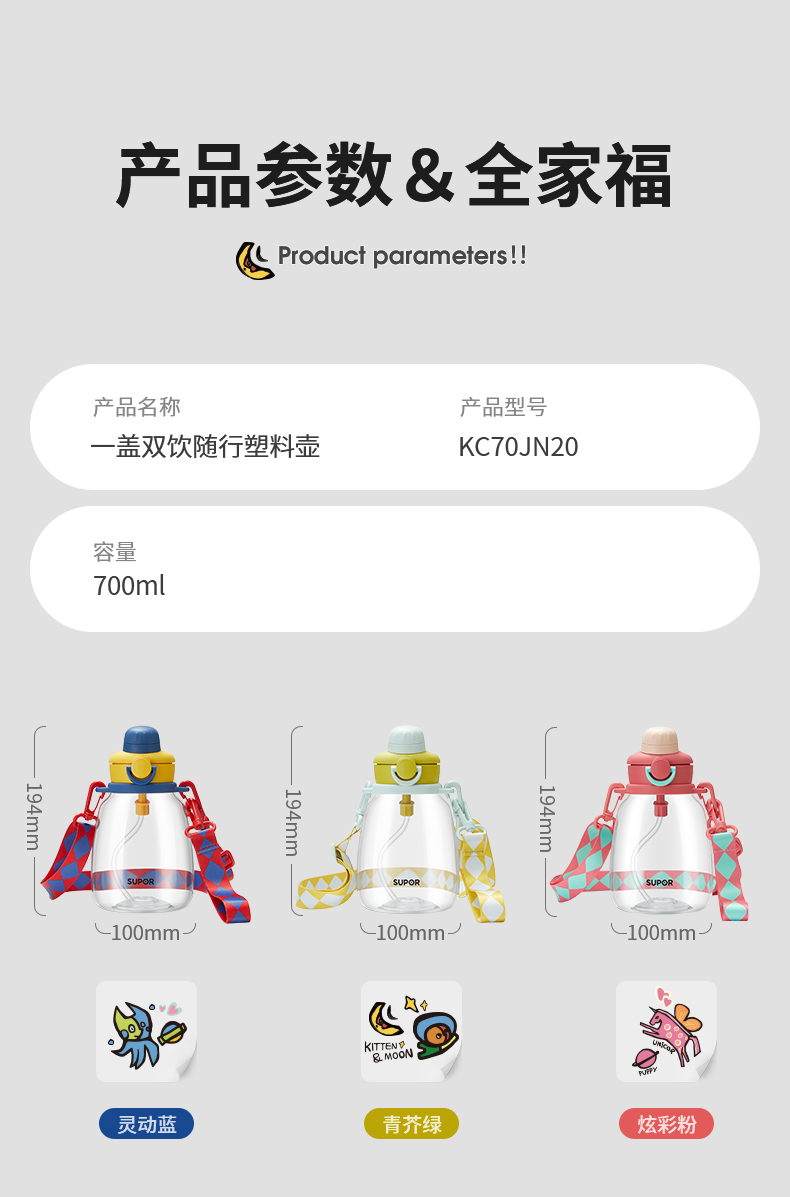 商品名称:苏泊尔 一盖双饮随行塑料壶700ML KC70JN20