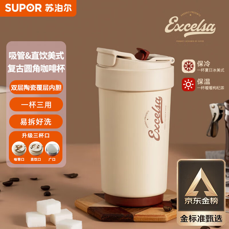 苏泊尔 晶瓷一盖双饮保温杯450ML KC45KR10