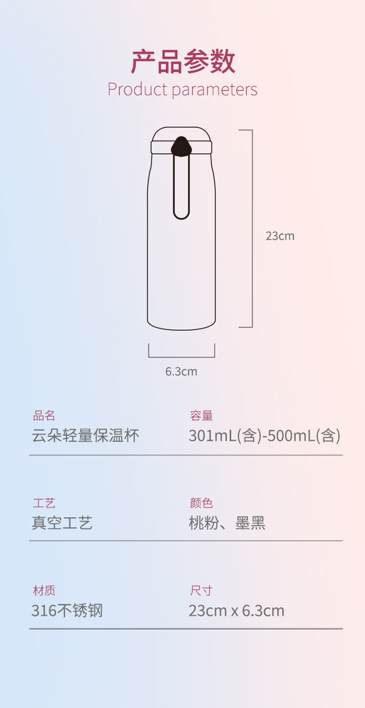 商品名称:苏泊尔(SUPOR)云朵轻量保温杯 一键开合380ML KC38FR20