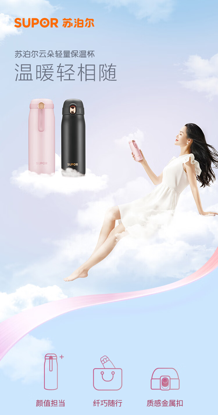 苏泊尔(SUPOR)云朵轻量保温杯 一键开合380ML KC38FR20