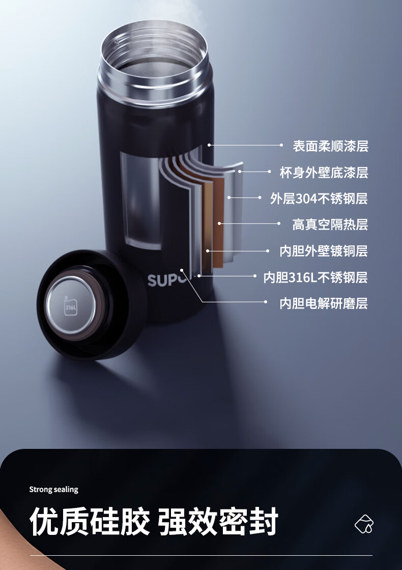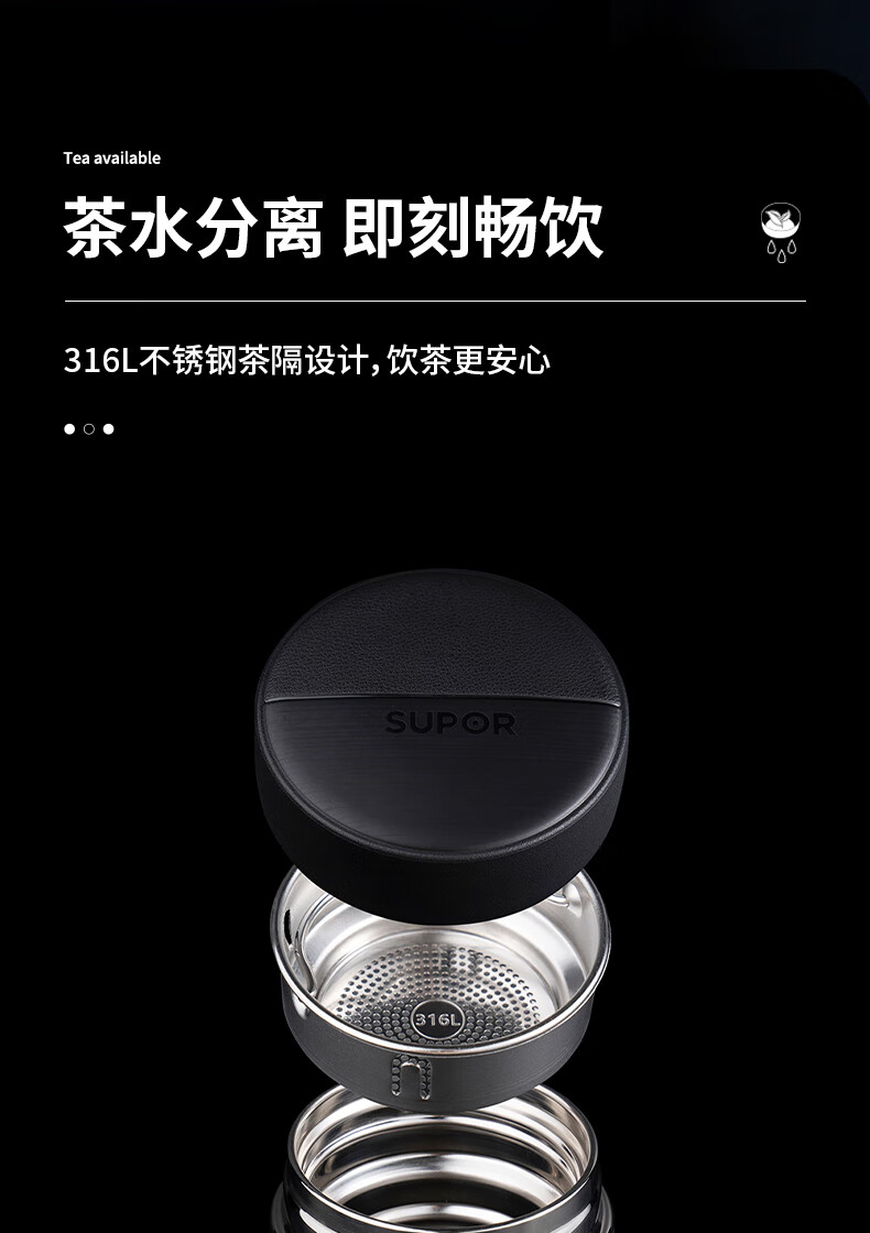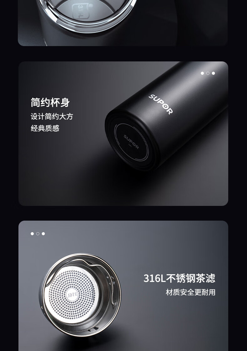 苏泊尔(SUPOR)卓系列保温杯 450ML.星河黑 KC45HP10