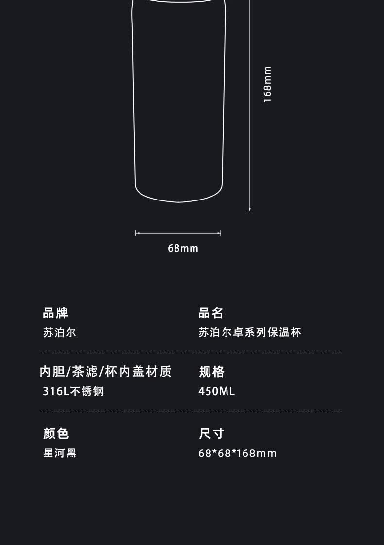 商品名称:苏泊尔(SUPOR)卓系列保温杯 450ML.星河黑 KC45HP10