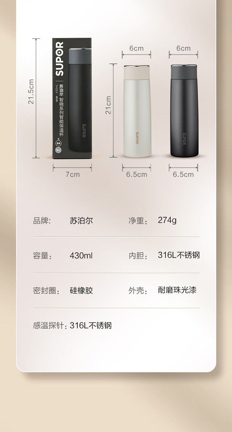 商品名称:苏泊尔(SUPOR)智晓系列智能保温杯430ML KC43HW10 430ml