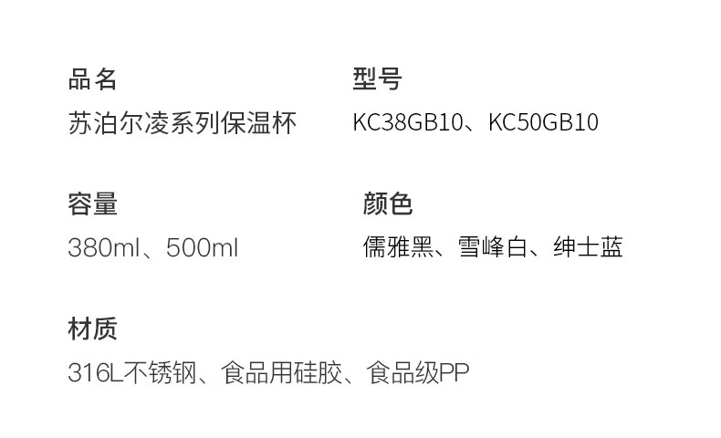 商品名称:苏泊尔(SUPOR) 凌系列保温杯380ML KC38GB10
