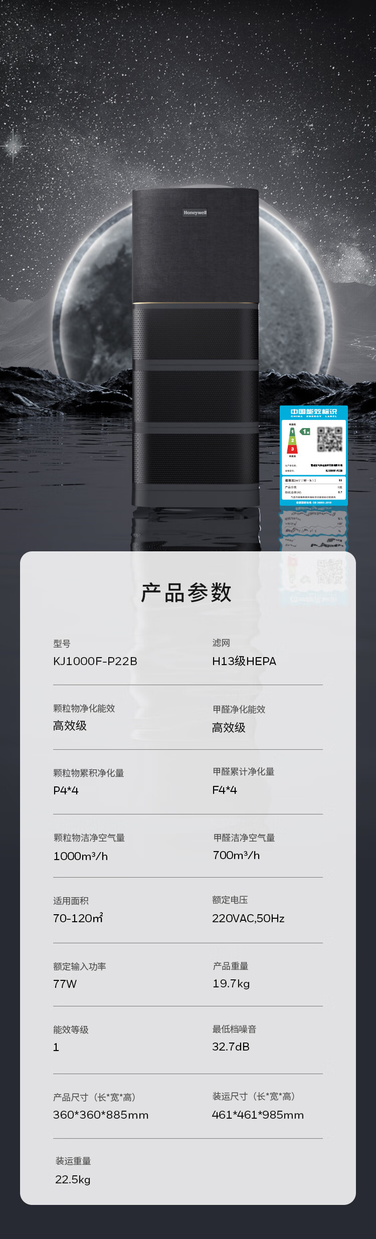 商品名称:霍尼韦尔(honeywell)空气消毒净化器 KJ1000F-P22B (订购款)