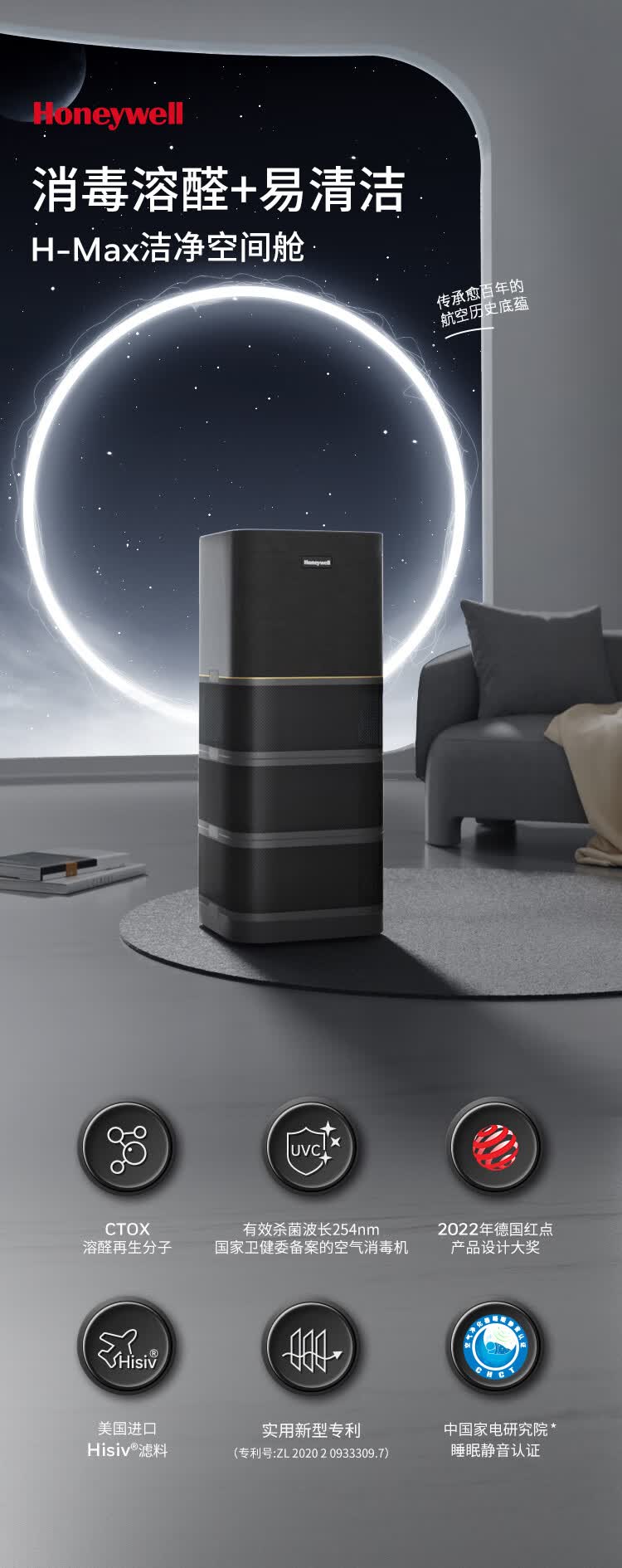 霍尼韦尔(honeywell)空气消毒净化器 KJ1000F-P22B (订购款)