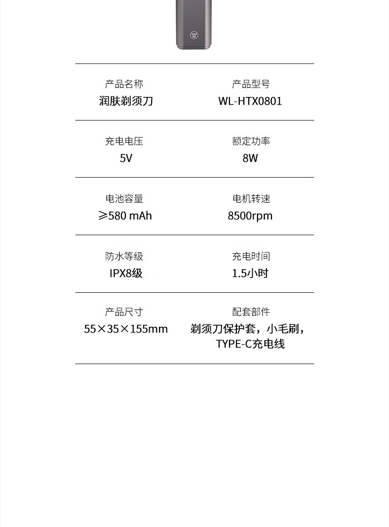 商品名称:Westinghouse西屋 润肤剃须刀 WL-HTX0801