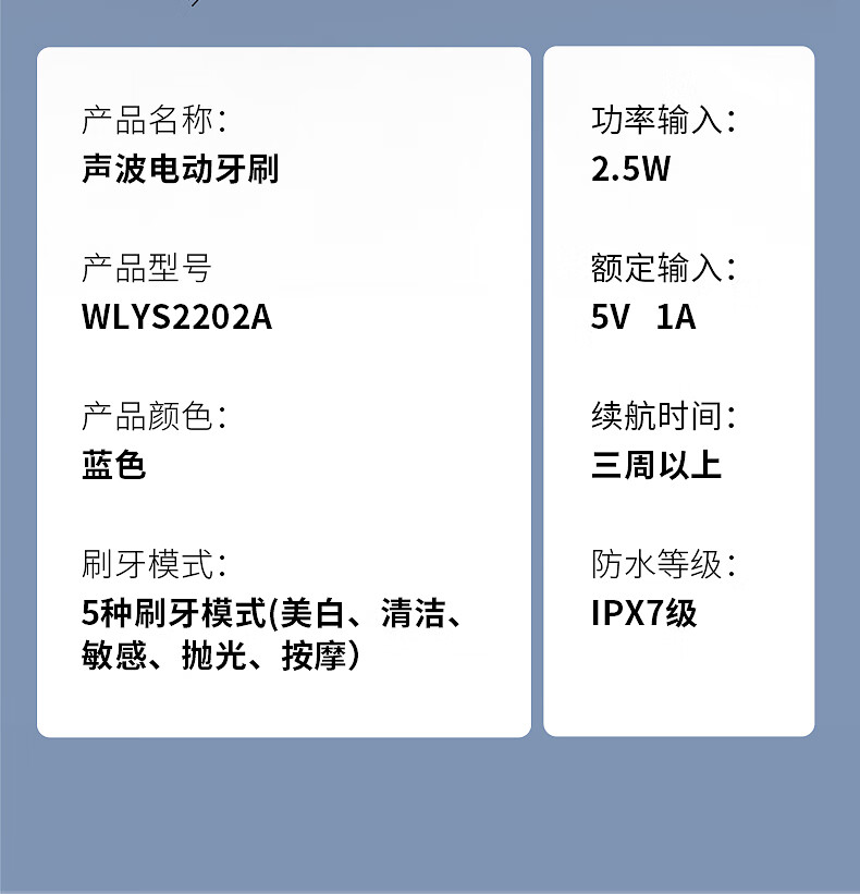 商品名称:Westinghouse西屋 声波电动牙刷 WL-YS2202A