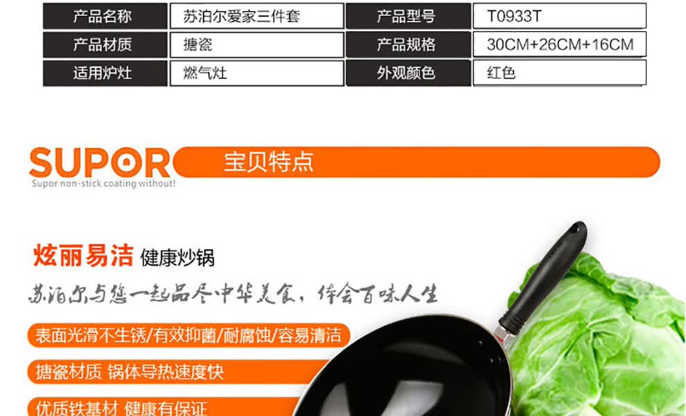 商品名称:苏泊尔(SUPOR) 爱家三件套 T0933T