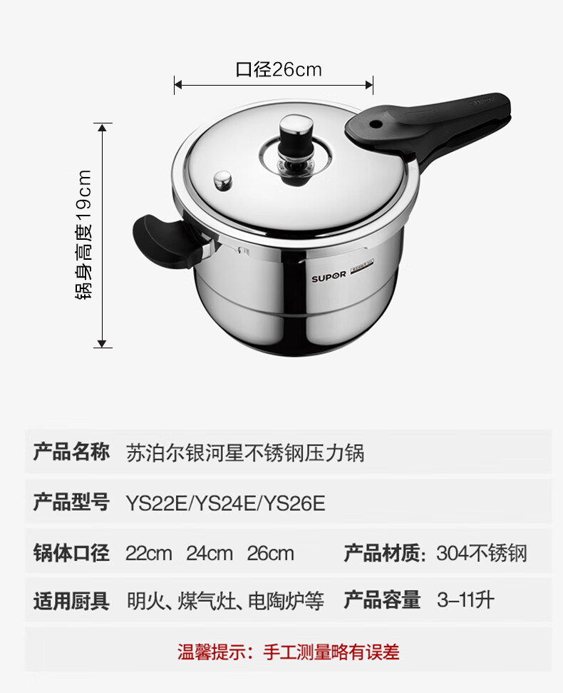 苏泊尔(SUPOR)银河星不锈钢压力锅 YS24E