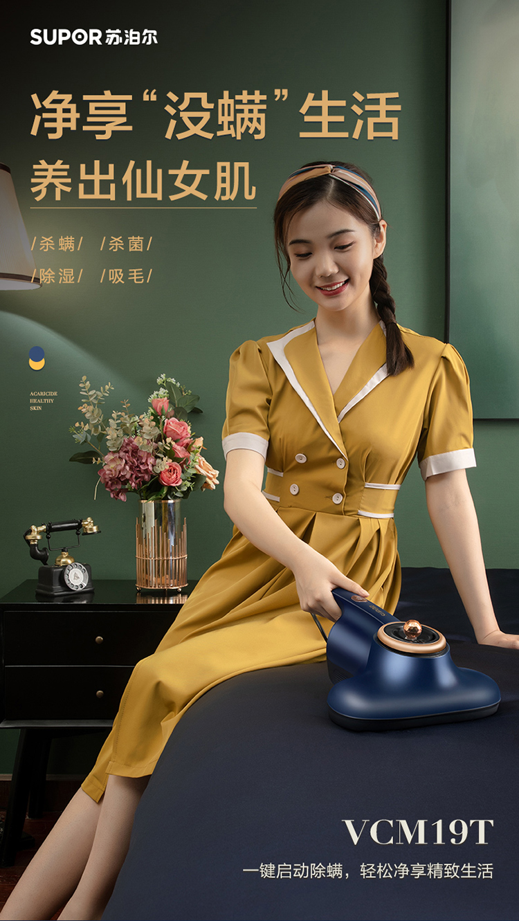 苏泊尔 (SUPOR )除螨仪手持除螨真空吸尘 强力双拍打紫外线杀菌 VCM19T