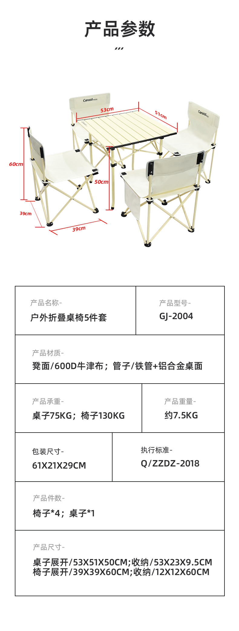 商品名称:车管家 户外折叠桌椅五件套 GJ-2004