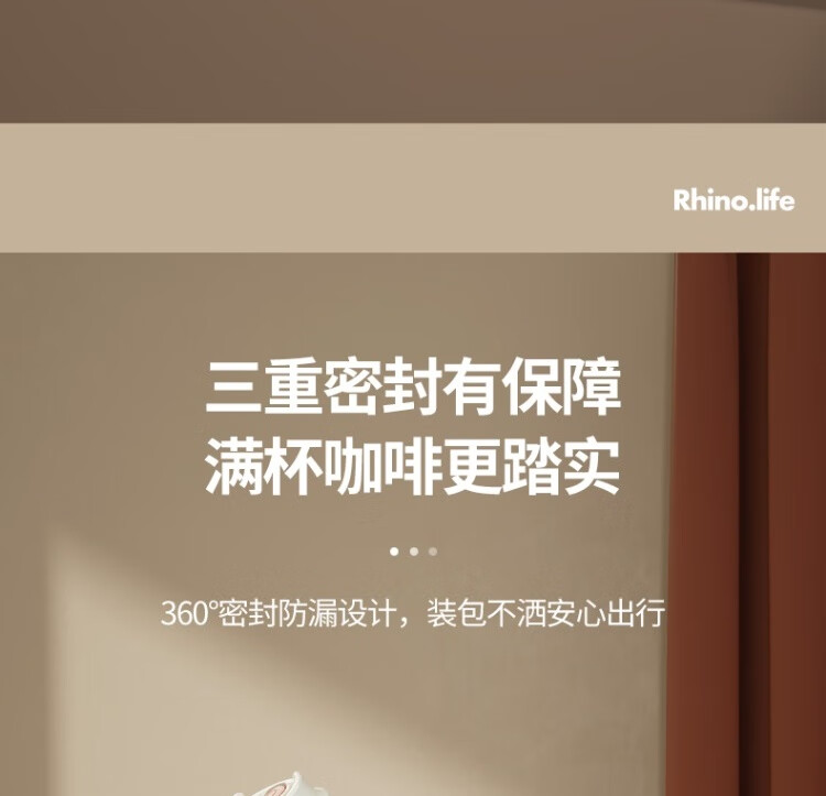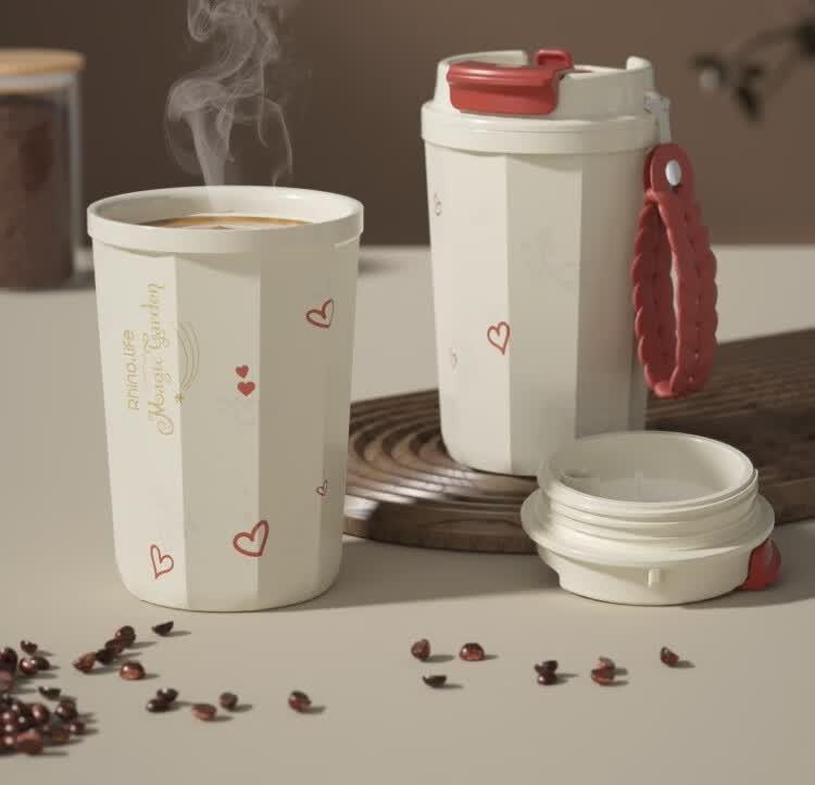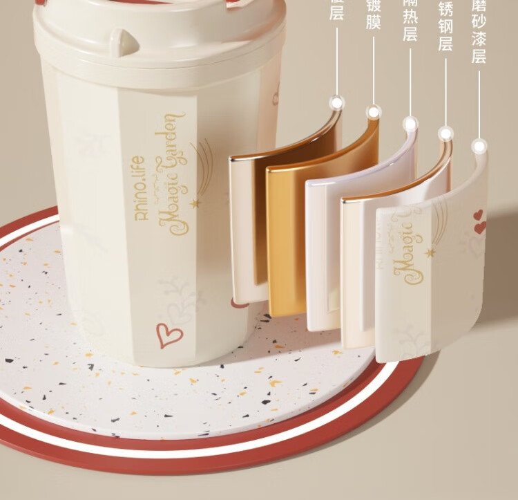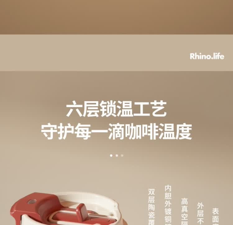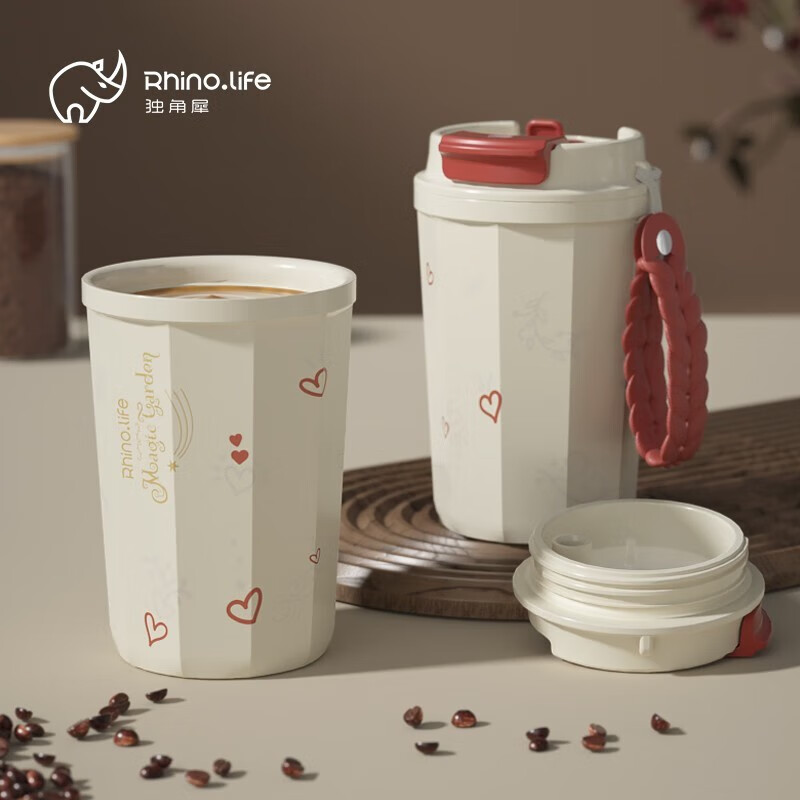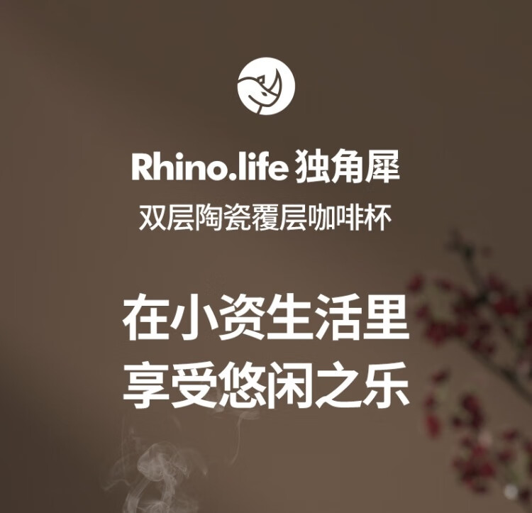独角犀 双饮口陶瓷内胆咖啡杯 春绿海棠 TD50202701