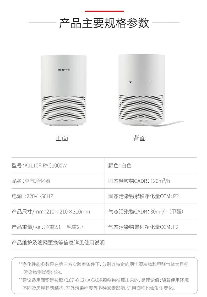 商品名称:霍尼韦尔(honeywell) 空气净化器 KJ110F-PAC1000W