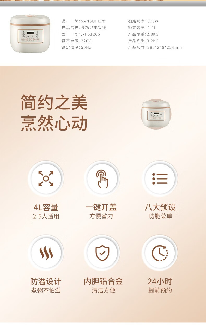 商品名称:SANSUI 山水 多功能电饭煲 S-FB1206