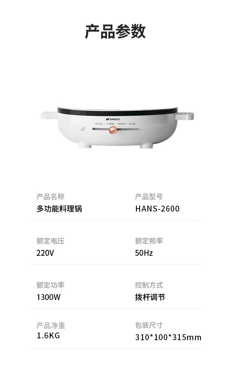商品名称:SANSUI 山水 分体式电烤盘 HANS-2600B