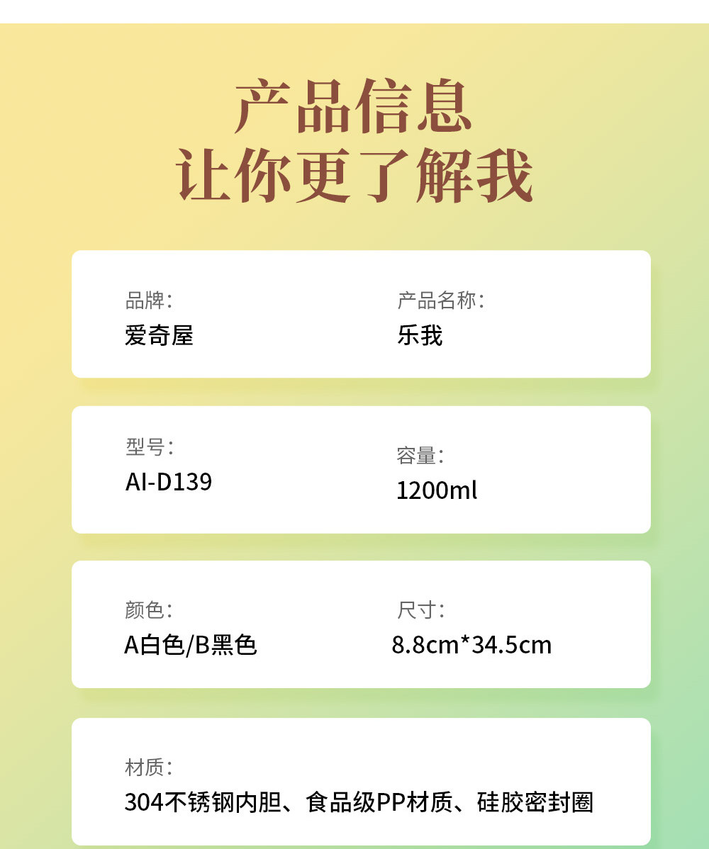 商品名称:爱奇屋 乐我保温杯 AI-D139 1200ml