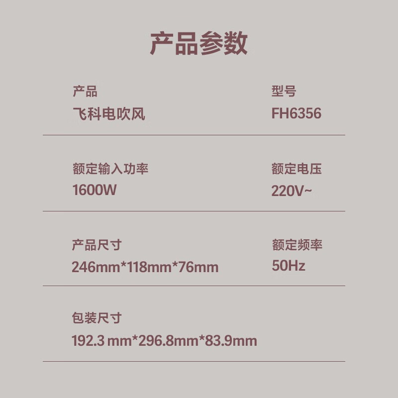 商品名称:飞科(FLYCO)电吹风机家用 FH6356