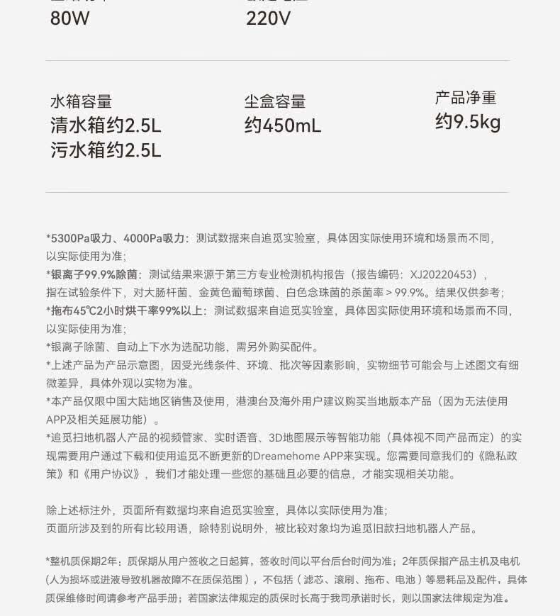 商品名称:追觅 智能扫地机器人智能版 W10s Pro