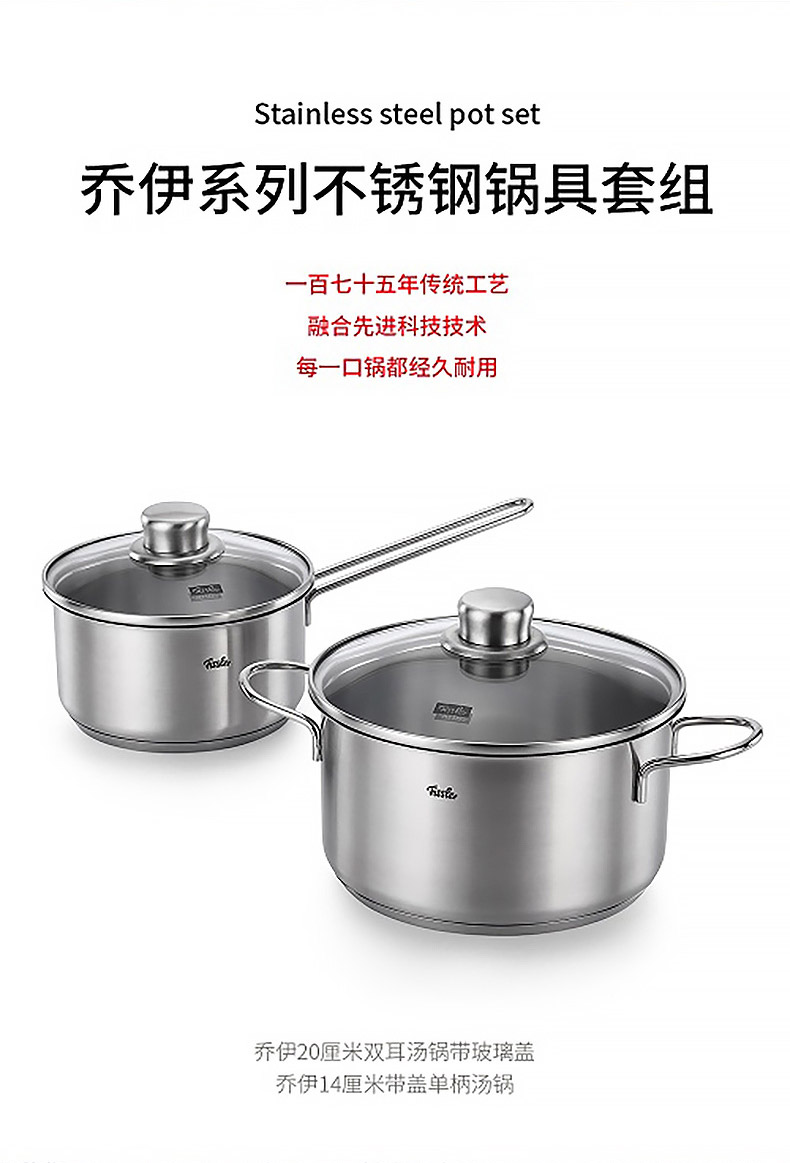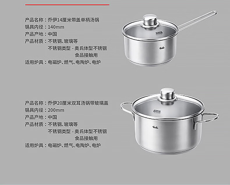 商品名称:菲仕乐 乔伊20厘米双耳汤锅14厘米单柄汤锅套组EMO511120000-Q(汤锅) EM0051011410(汤锅)