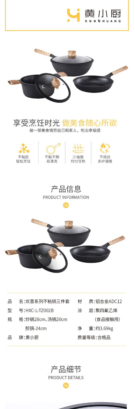 商品名称:黄小厨 欢喜系列不粘锅三件套 HXC-L-TZ002B