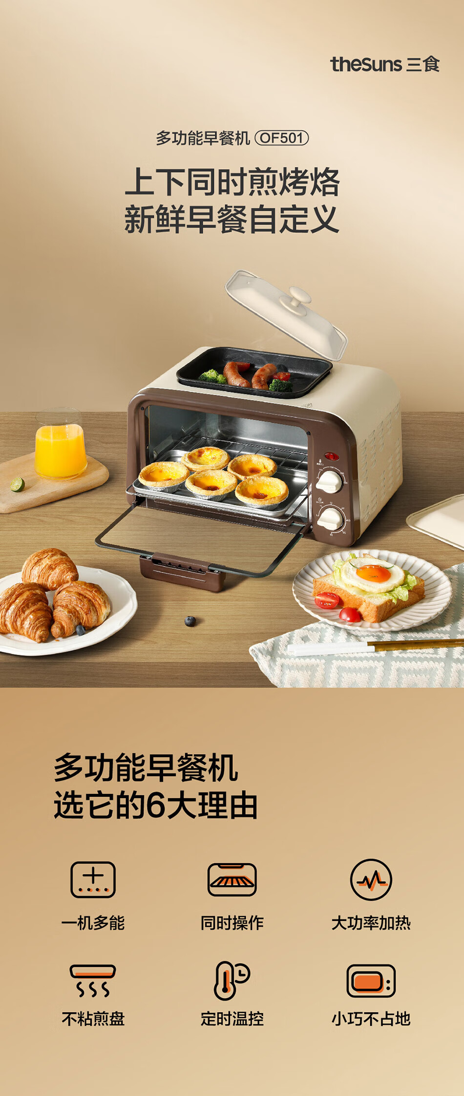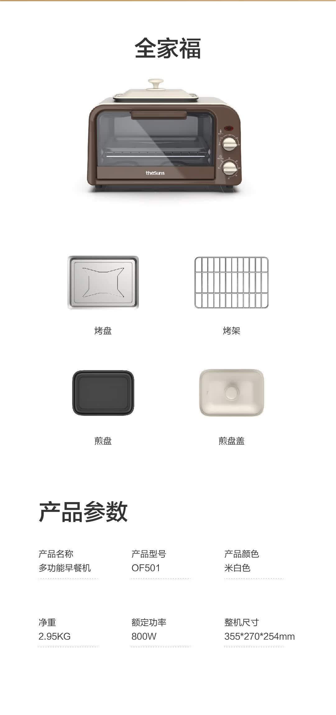 商品名称:THESUNS三食黄小厨 多功能早餐机 OF501 奶白色