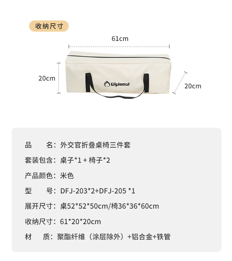 商品名称:Diplomat 外交官 折叠桌椅套装 DFJ-203*2+DFJ-205
