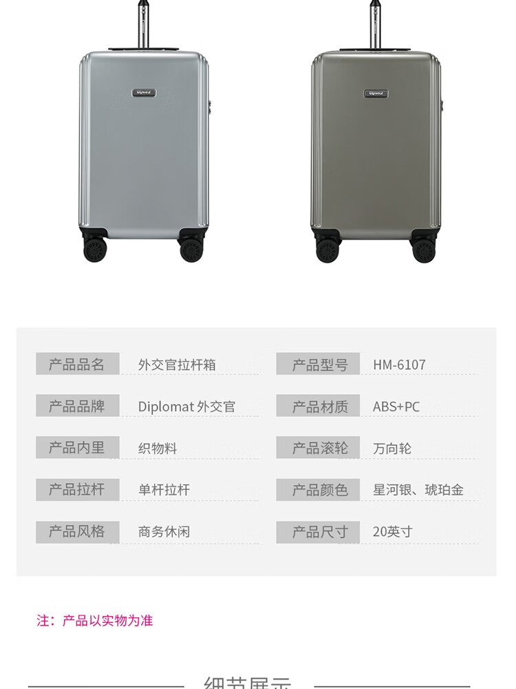 商品名称:Diplomat 外交官 20英寸 拉杆行 HM-6107-2 星河银 20英寸